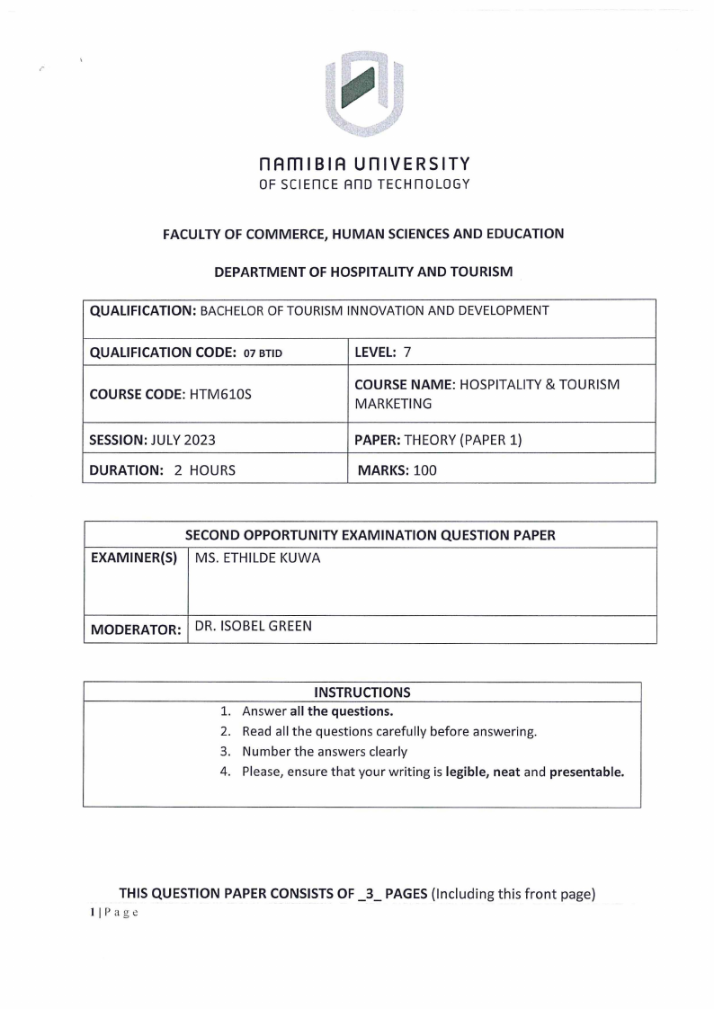 2.2 Identify and explain the four (7) characteristics of service marketing in Hospitality and Tourism