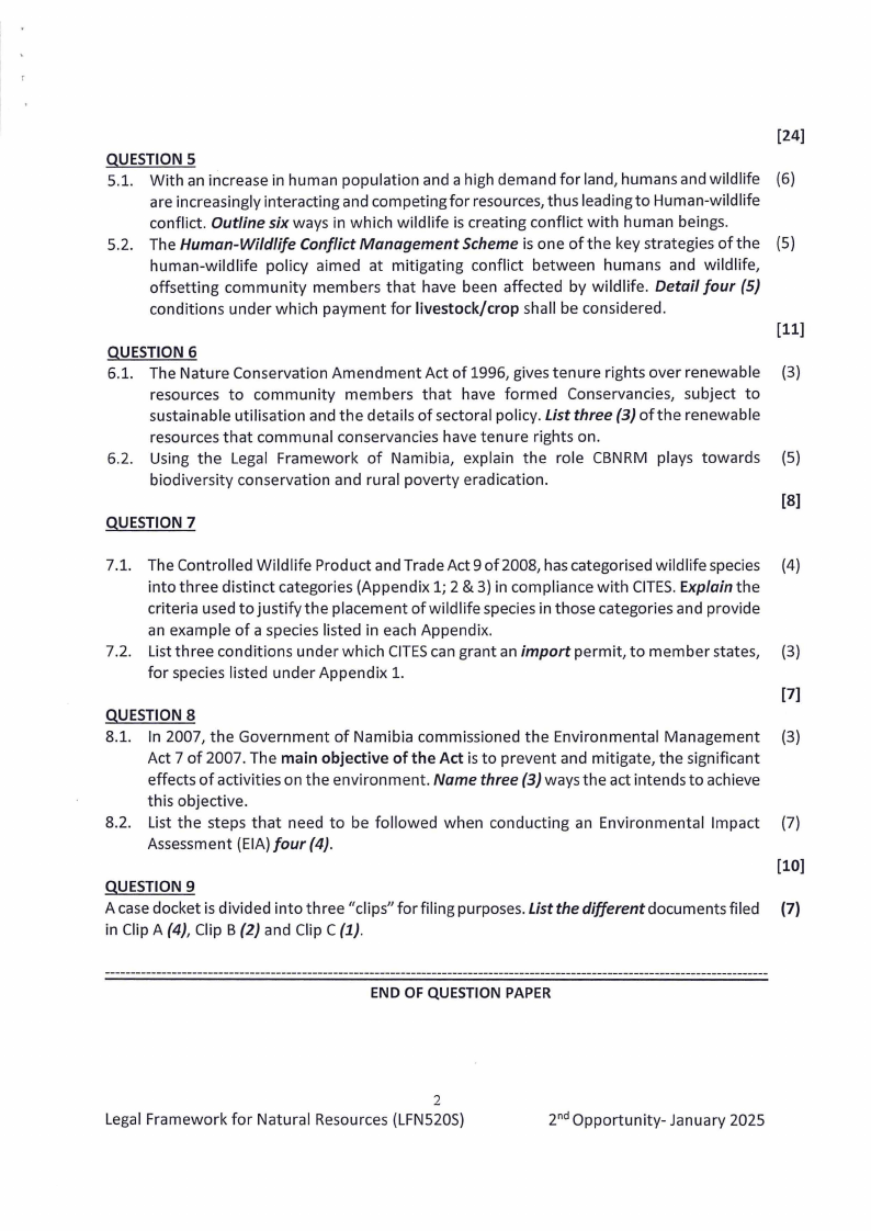 6.2. Using the Legal Framework of Namibia, explain the role CBNRM plays towards (5)