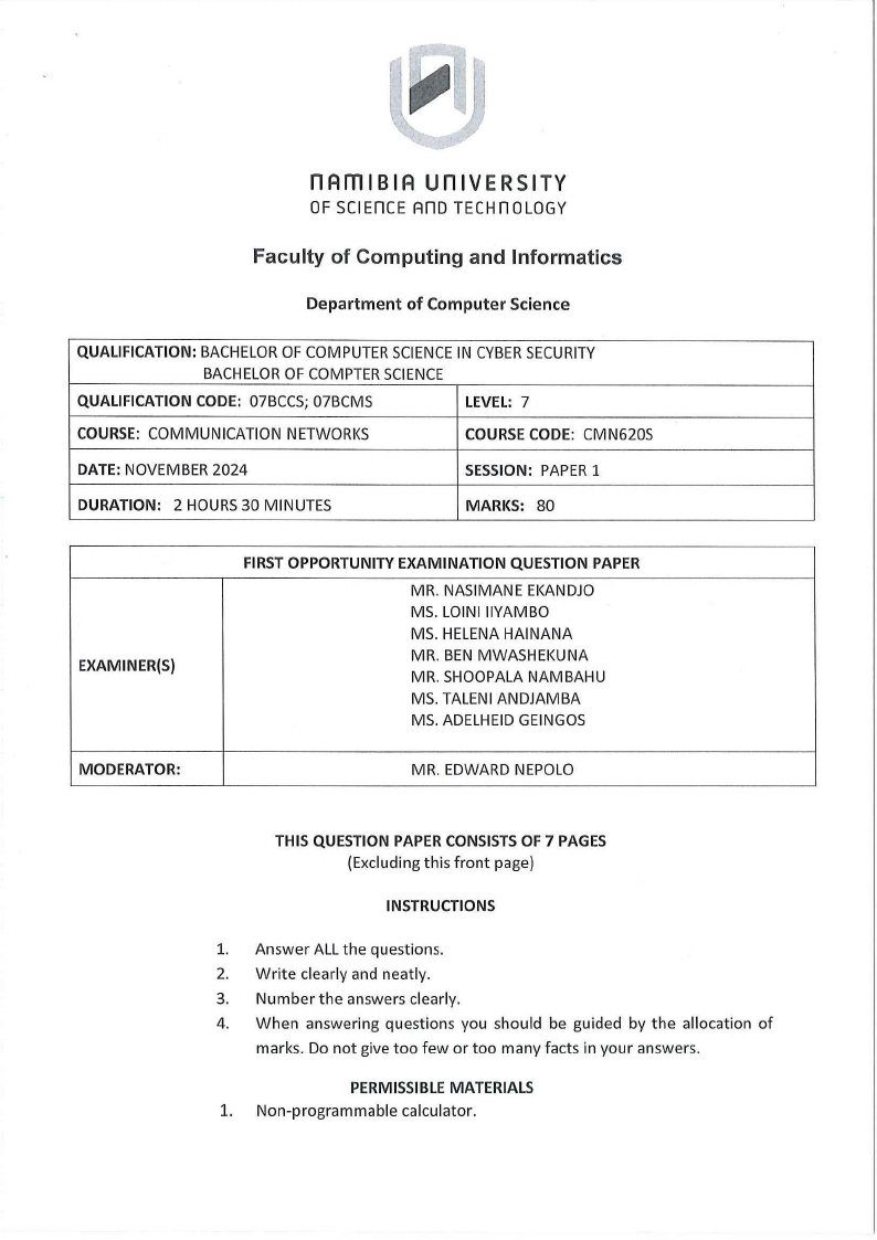 CMN620S - COMMUNICATION NETWORKS- 1ST OPP - NOV 2024 |