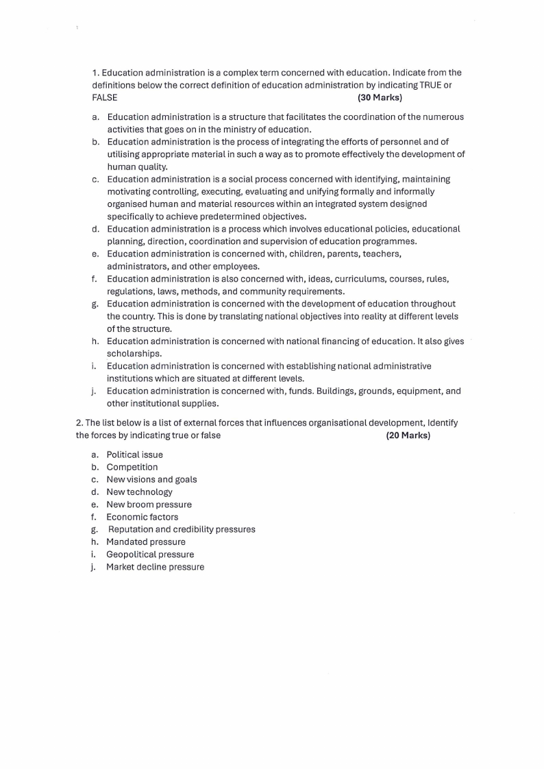 a. Education administration is a structure that facilitates the coordination of the numerous