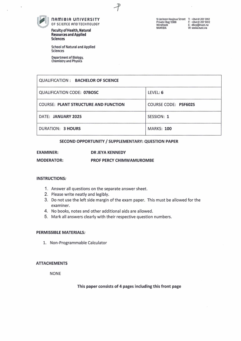 PLANTSTRUCTUREAND FUNCTION: PSF602S
