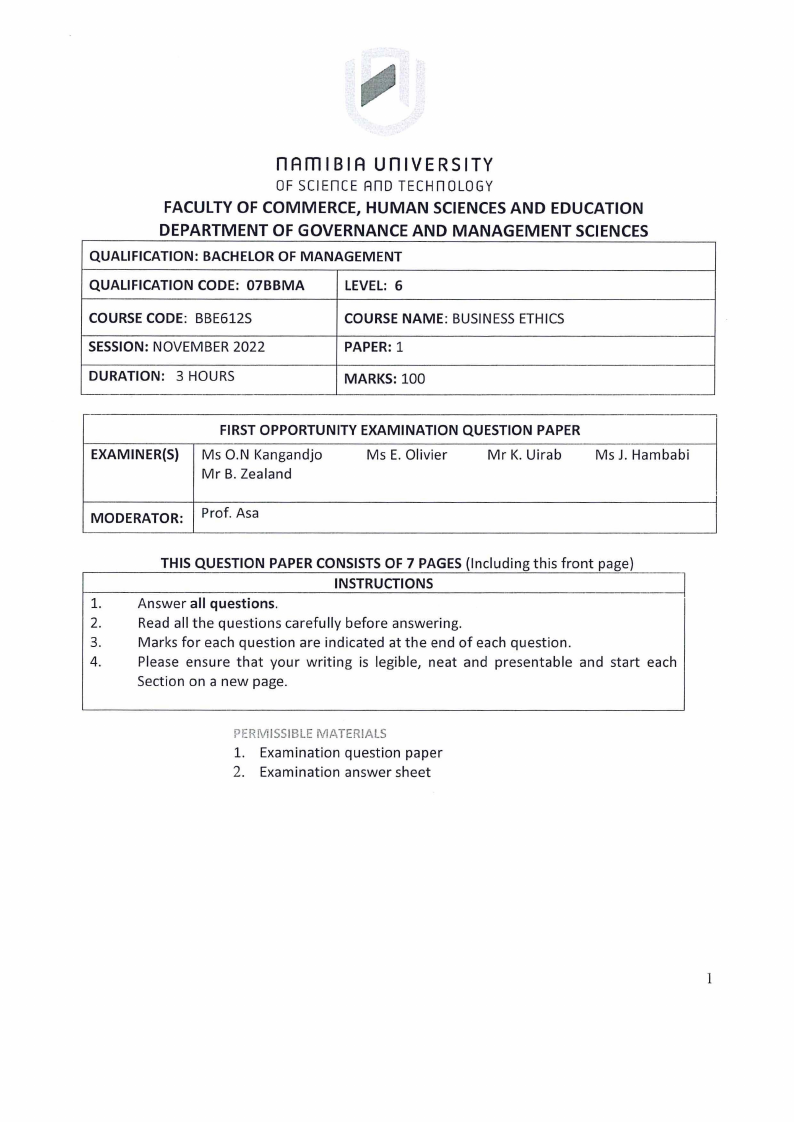 BBE612S - Business Ethics - 1st Opp - Nov 2022 |