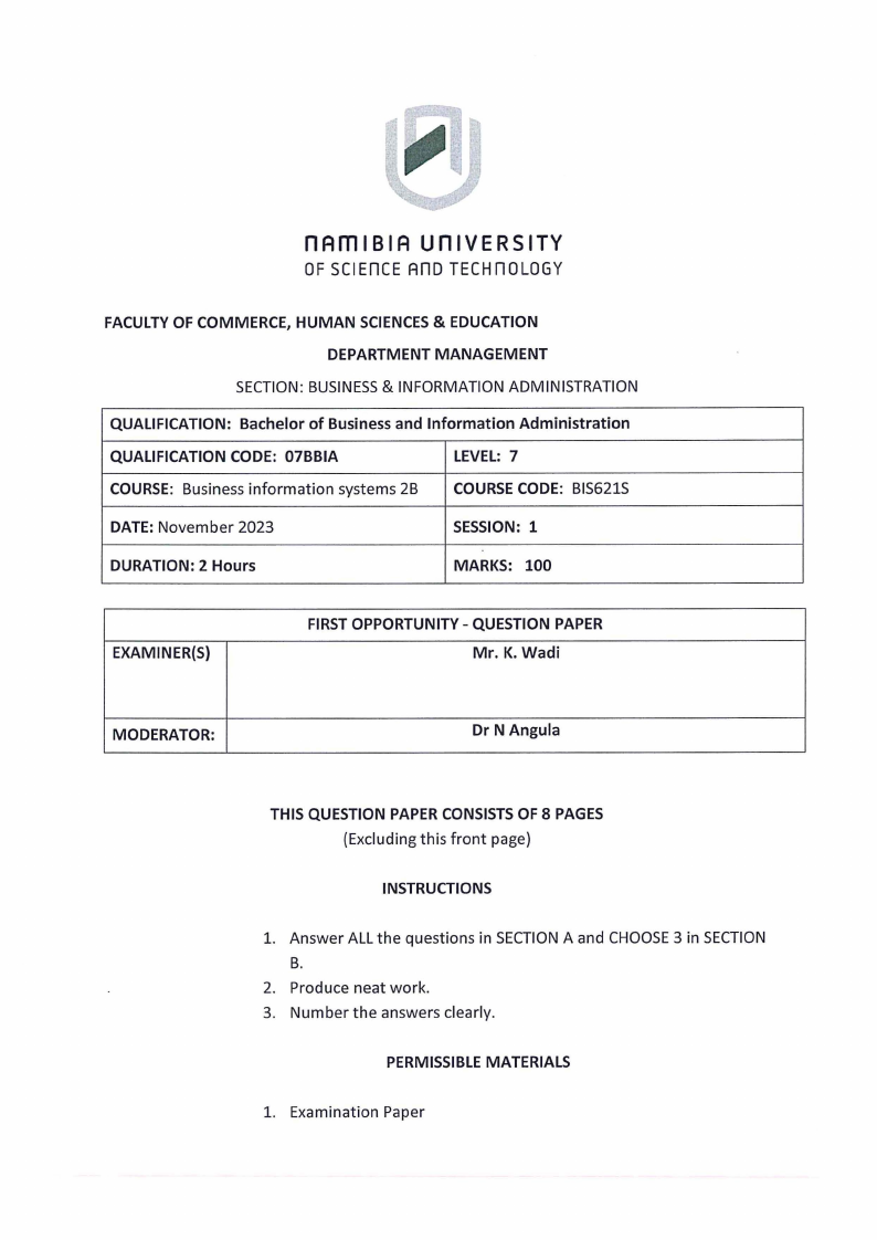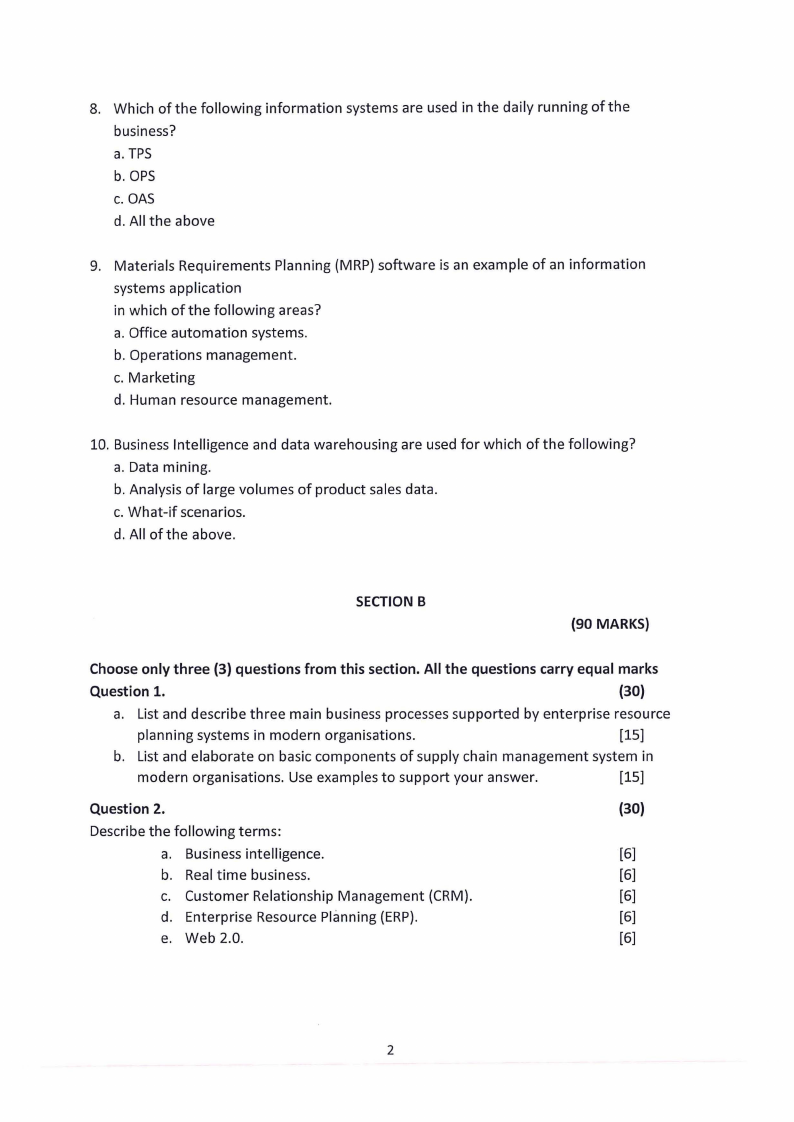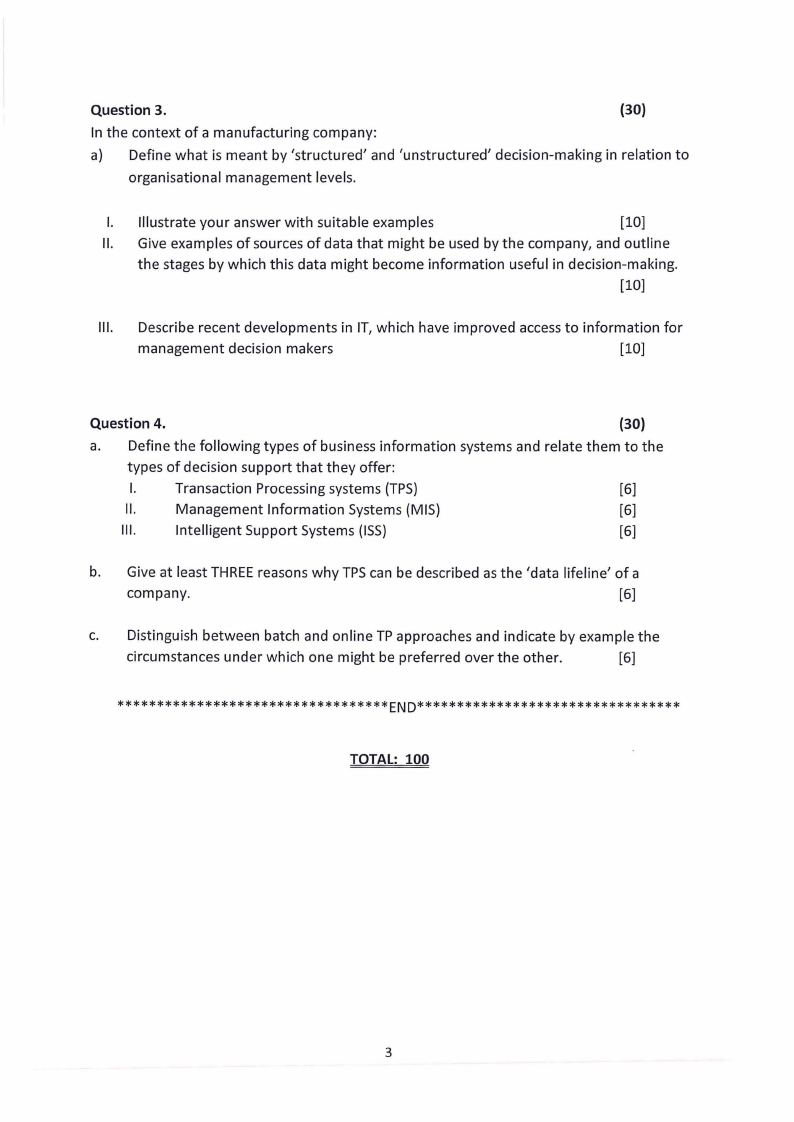 3. The information system used in the daily running of the business is: