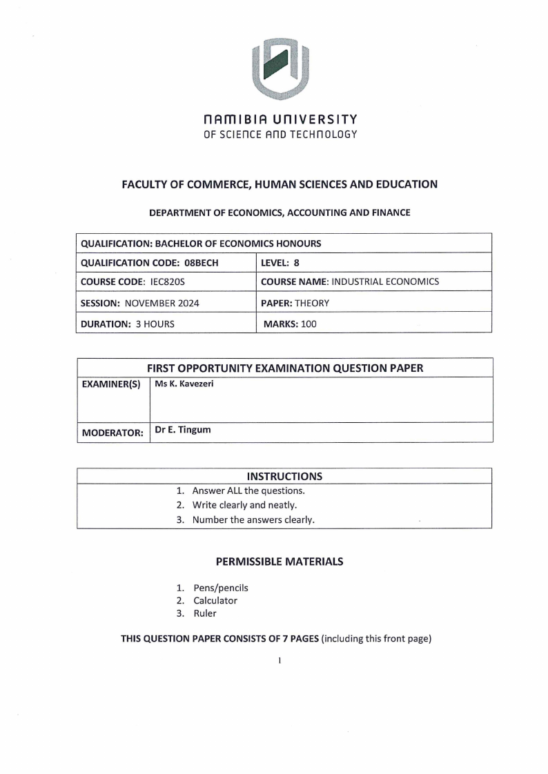 IEC820S-INDUSTRIAL ECONOMICS-1ST OPP-NOV 2024 |