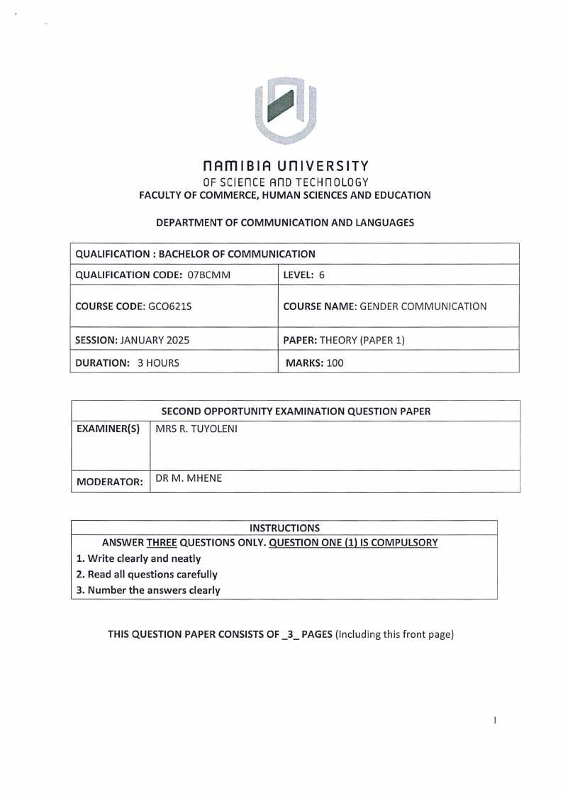 GCO621S - GENDER COMMUNICATION - 2ND OPP - JAN 2025 |