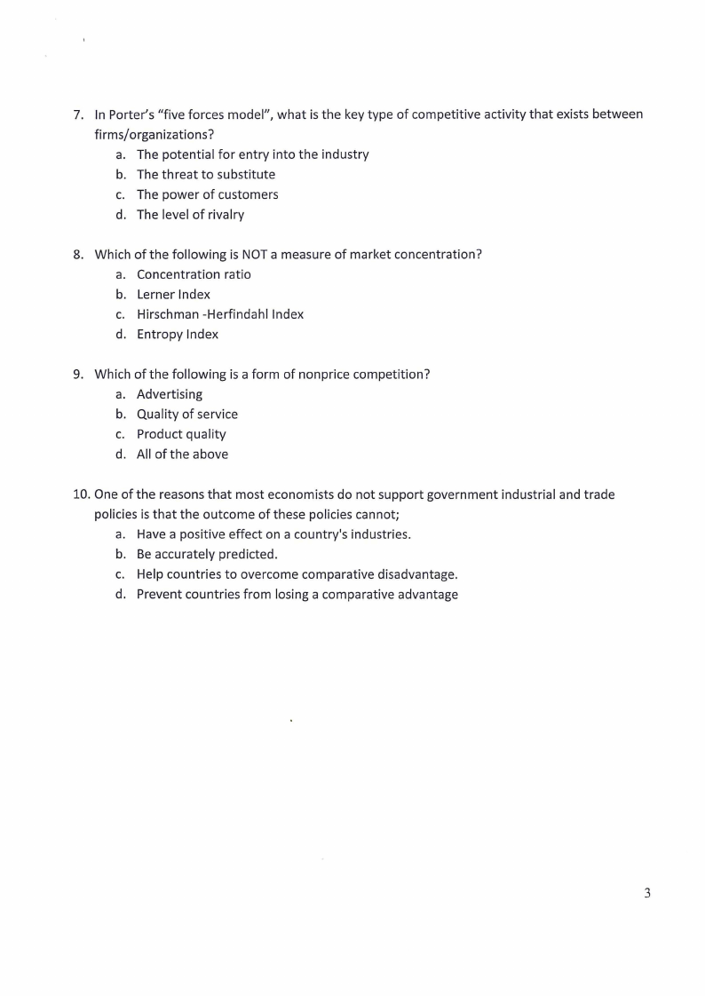 1. Which model (Cournot, Bertrand) would you think provides a better approximation to each