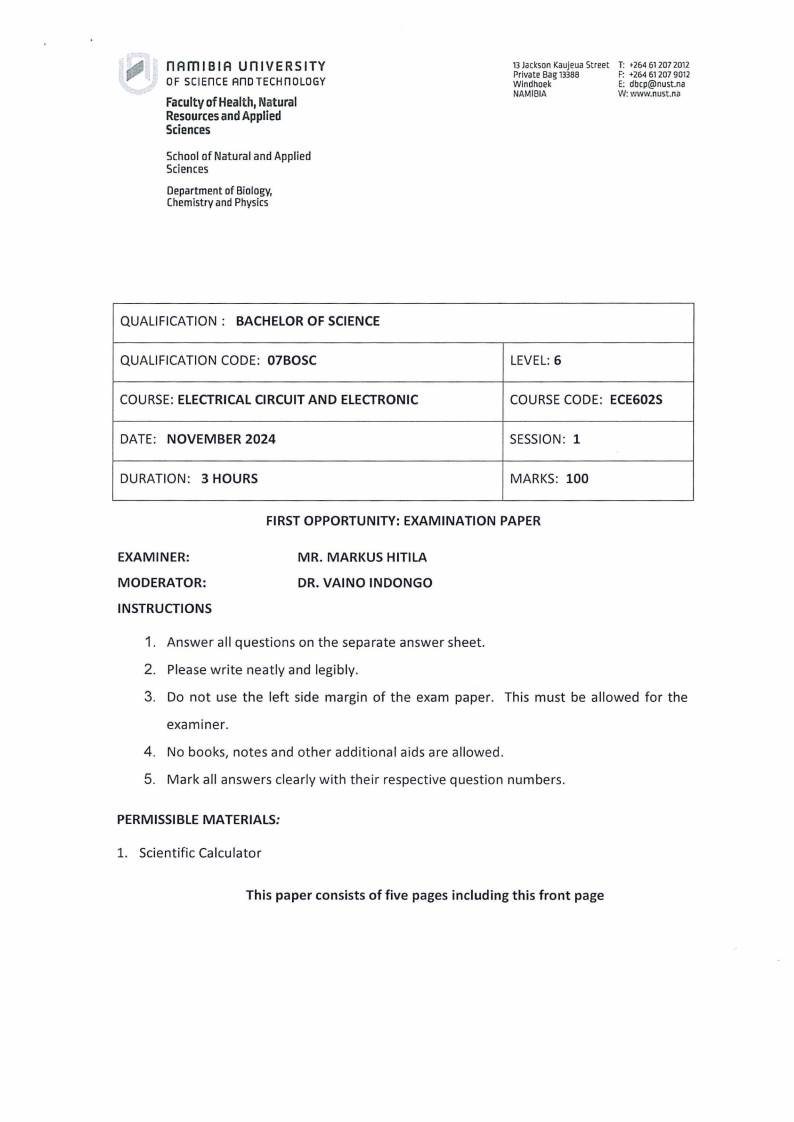 ECE602S - ELECTRICAL CIRCUIT AND ELECTRONIC - 1ST OPP - NOVEMBER 2024