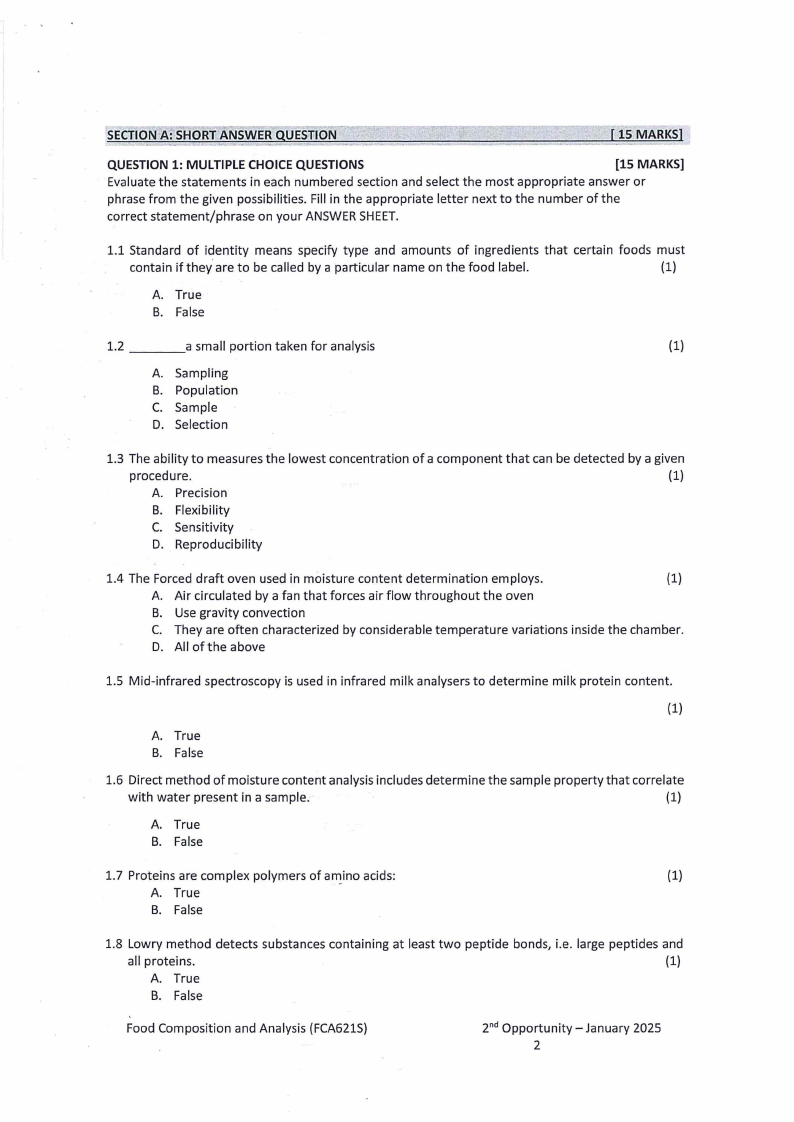 2.2 Analysis of the properties of a food material depends on the successful completion of several
