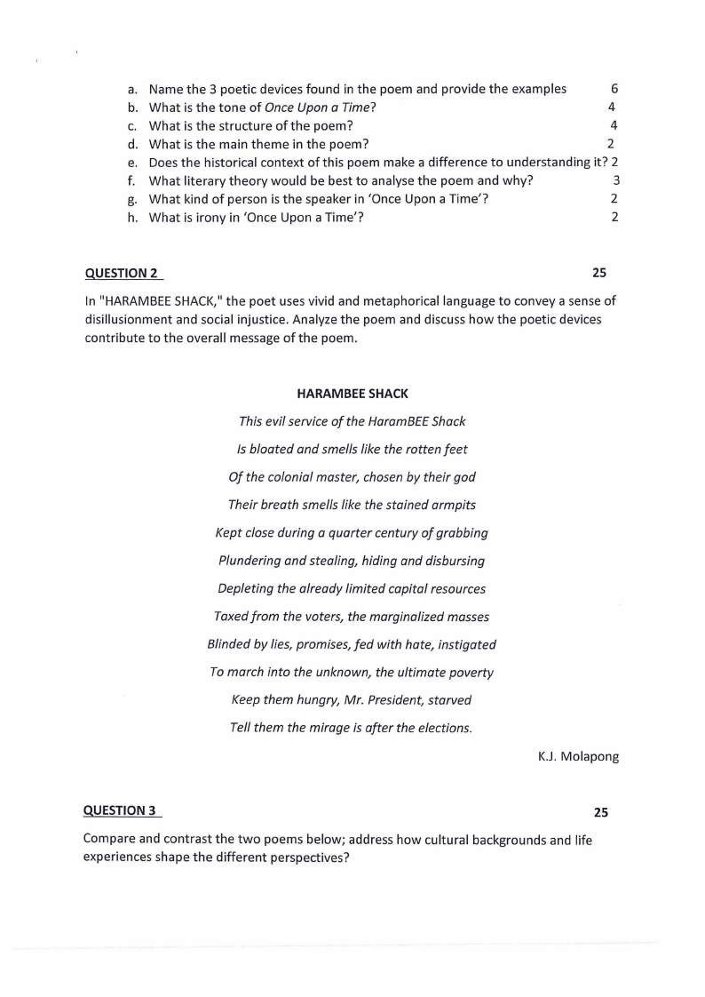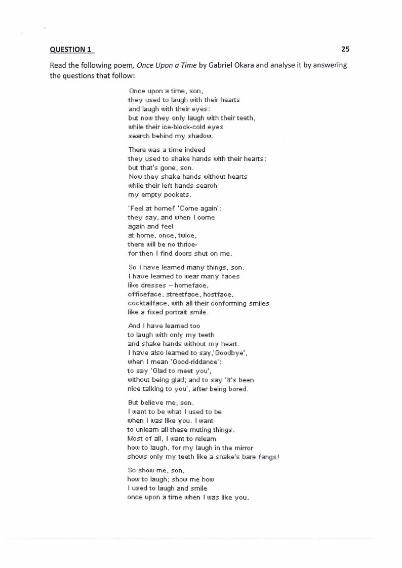 Read the following poem, Once Upon a Time by Gabriel Okara and analyse it by answering