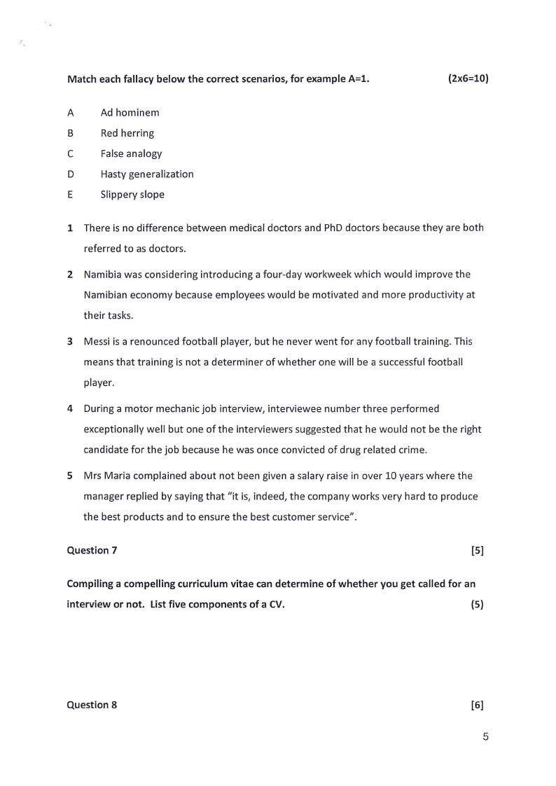 (5 marks for the statements)
