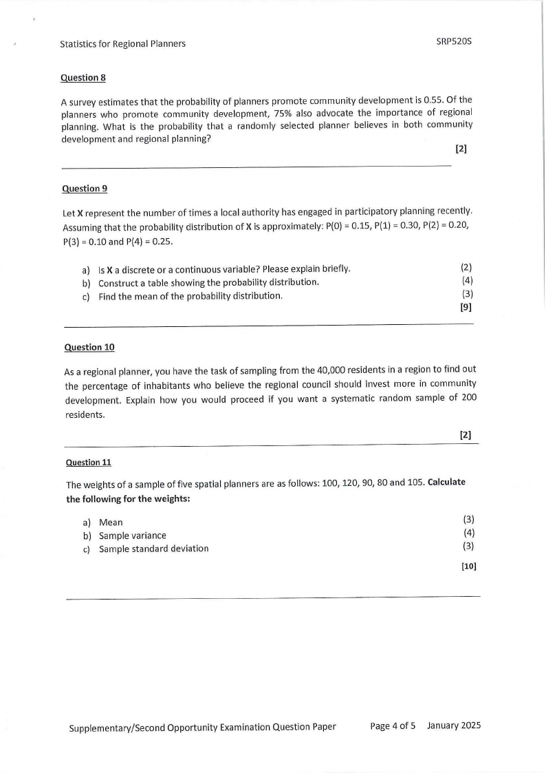 The weights of a sample offive spatial planners are as follows: 100, 120, 90, 80 and 105. Calculate