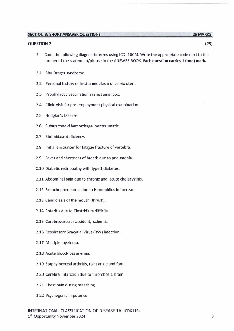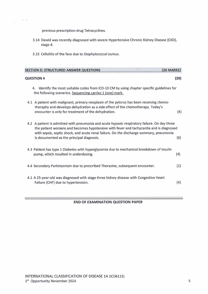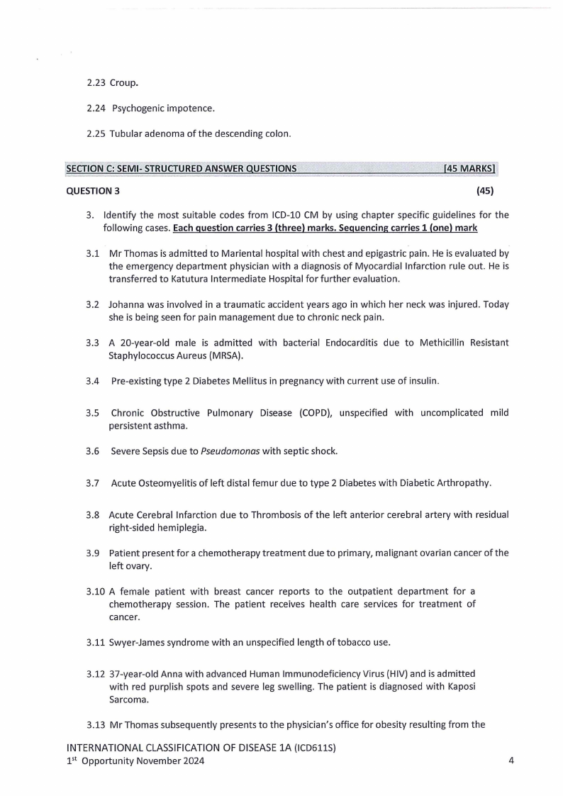 following cases. Each question carries 3 (three) marks. Sequencing carries 1 (one) mark