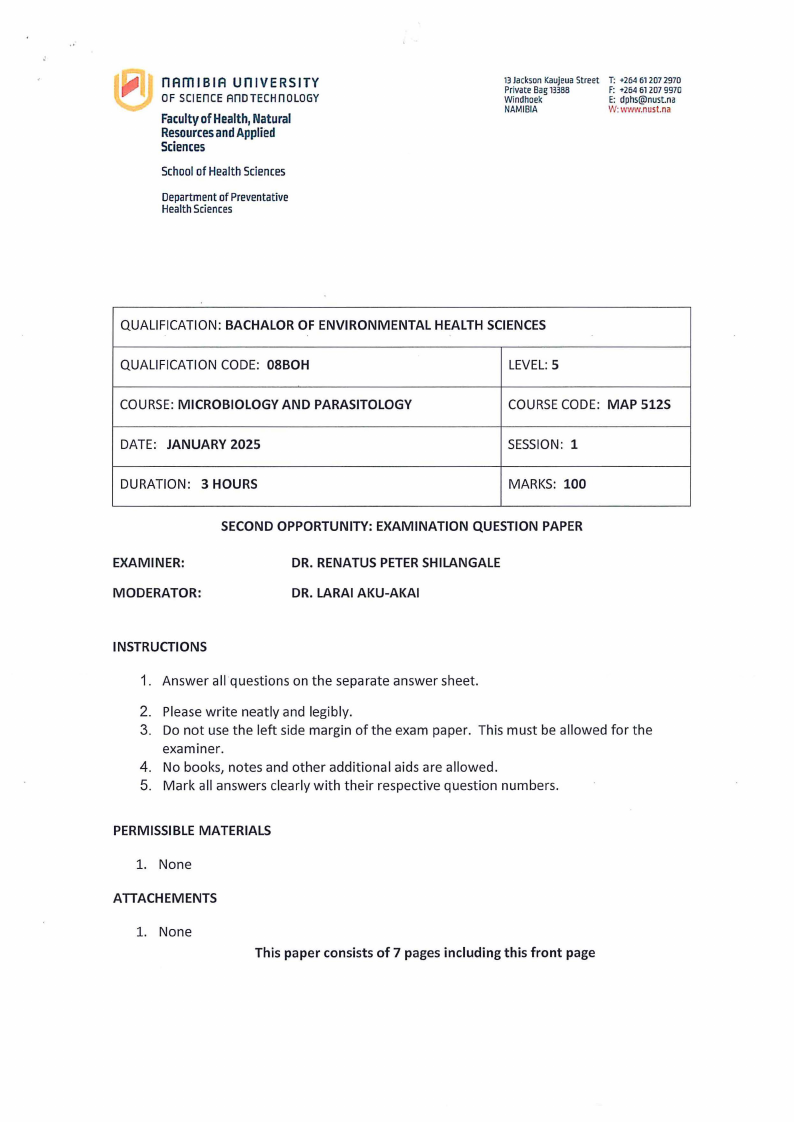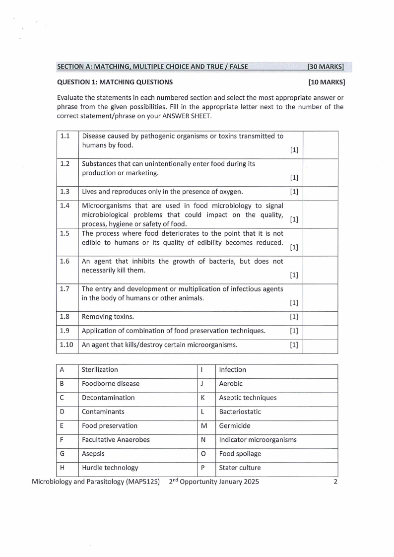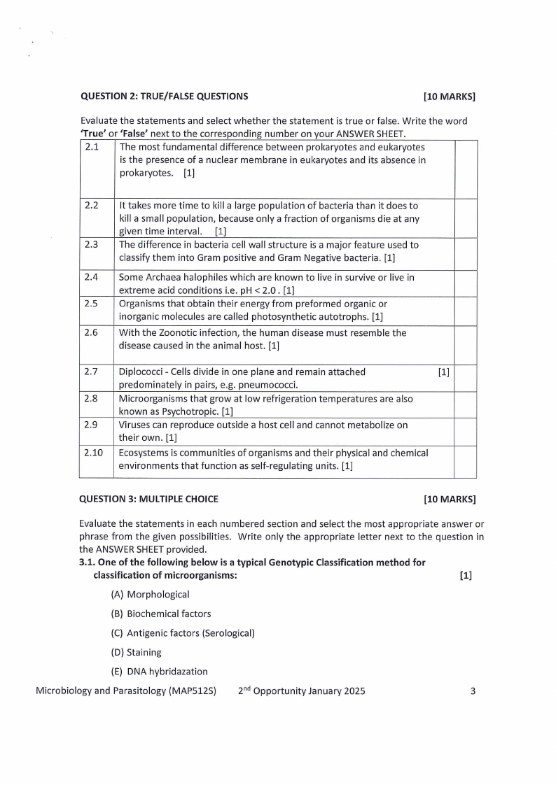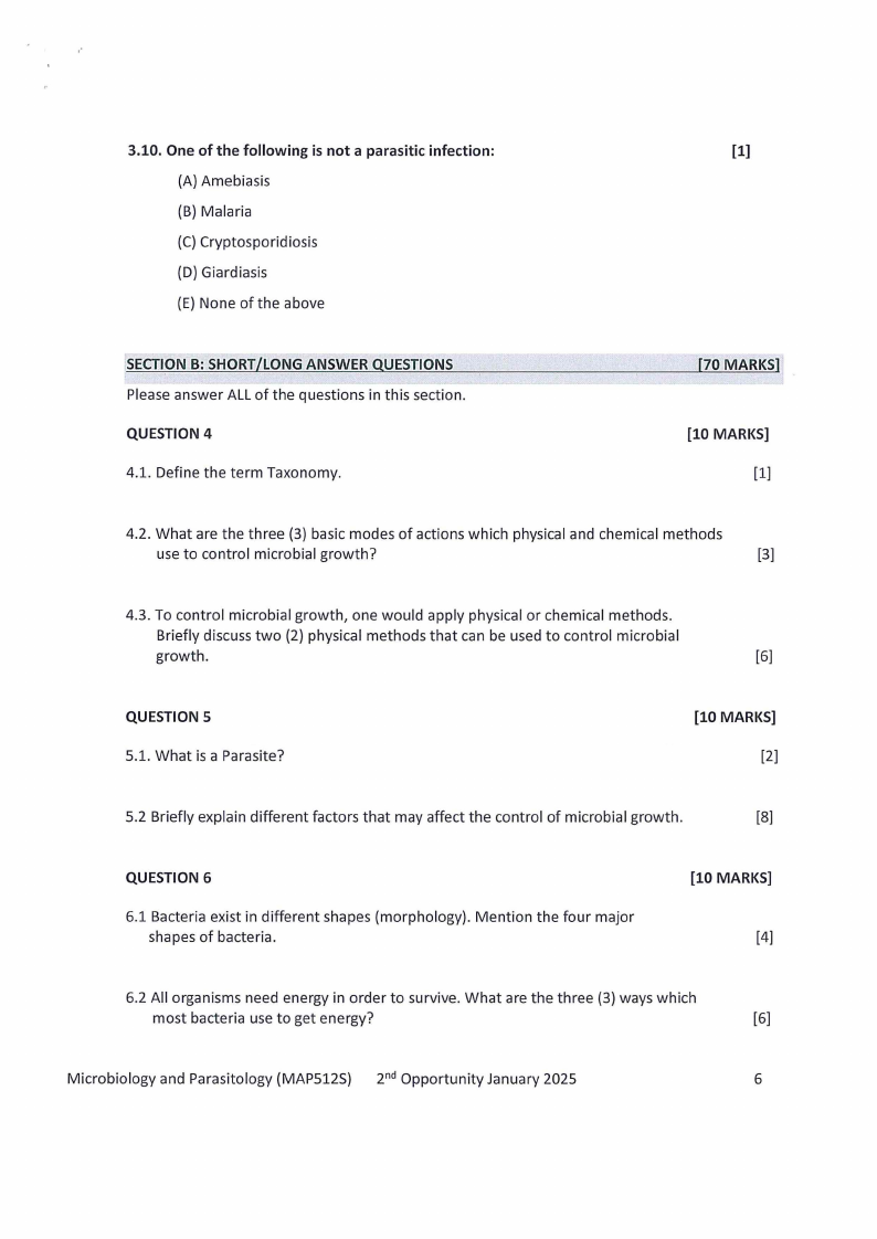 Microbiology and Parasitology (MAP512S) 2nd Opportunity January 2025