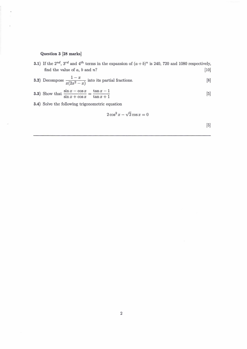 FIRST OPPORTUNITY: EXAMINATION QUESTION PAPER