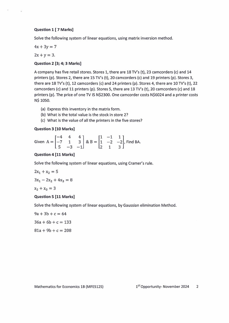 printers (p). The price of one TV IS N$2300. One camcorder costs N$6024 and a printer costs