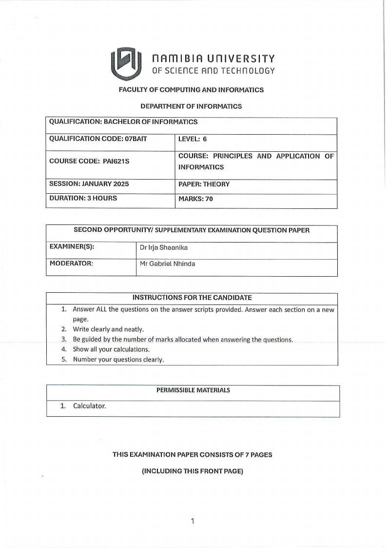 PAI621S - PRINCIPLES AND APPLICATION OF INFORMATICS - 2ND OPP - JAN 2025 |