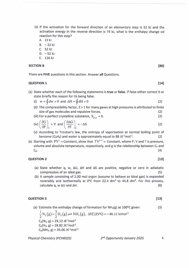 10. If the activation for the forward direction of an elementary step is 52 kJ and the