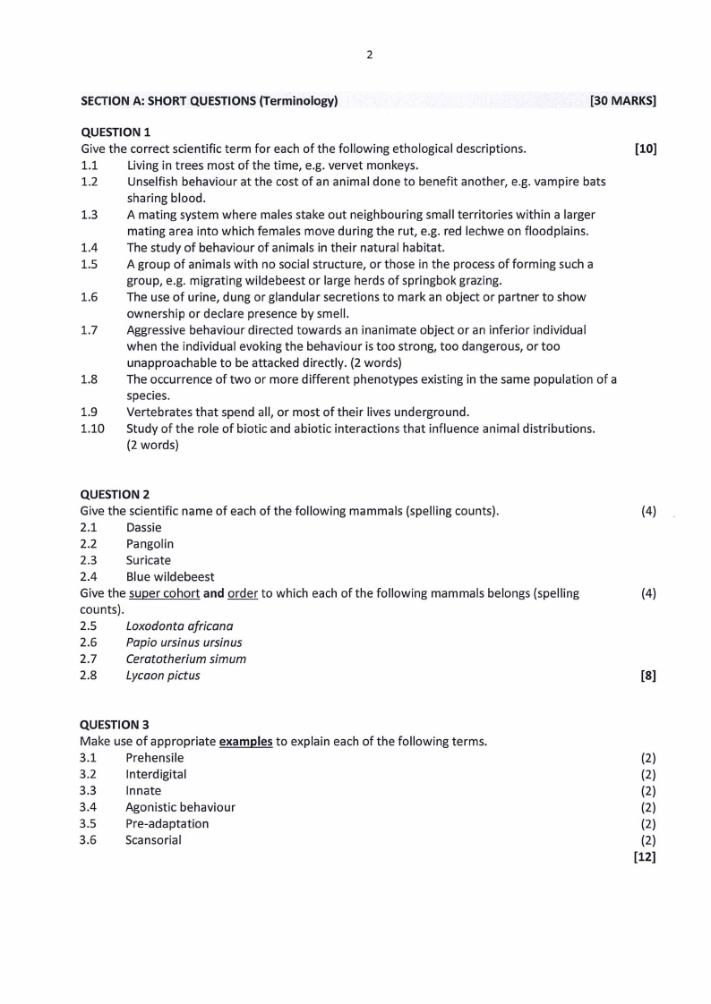 SECTION A: SHORT QUESTIONS (Terminology)