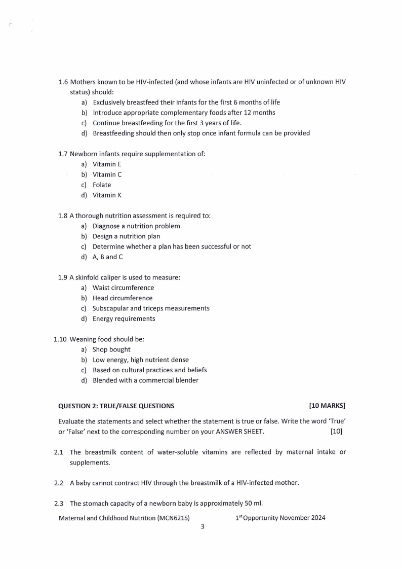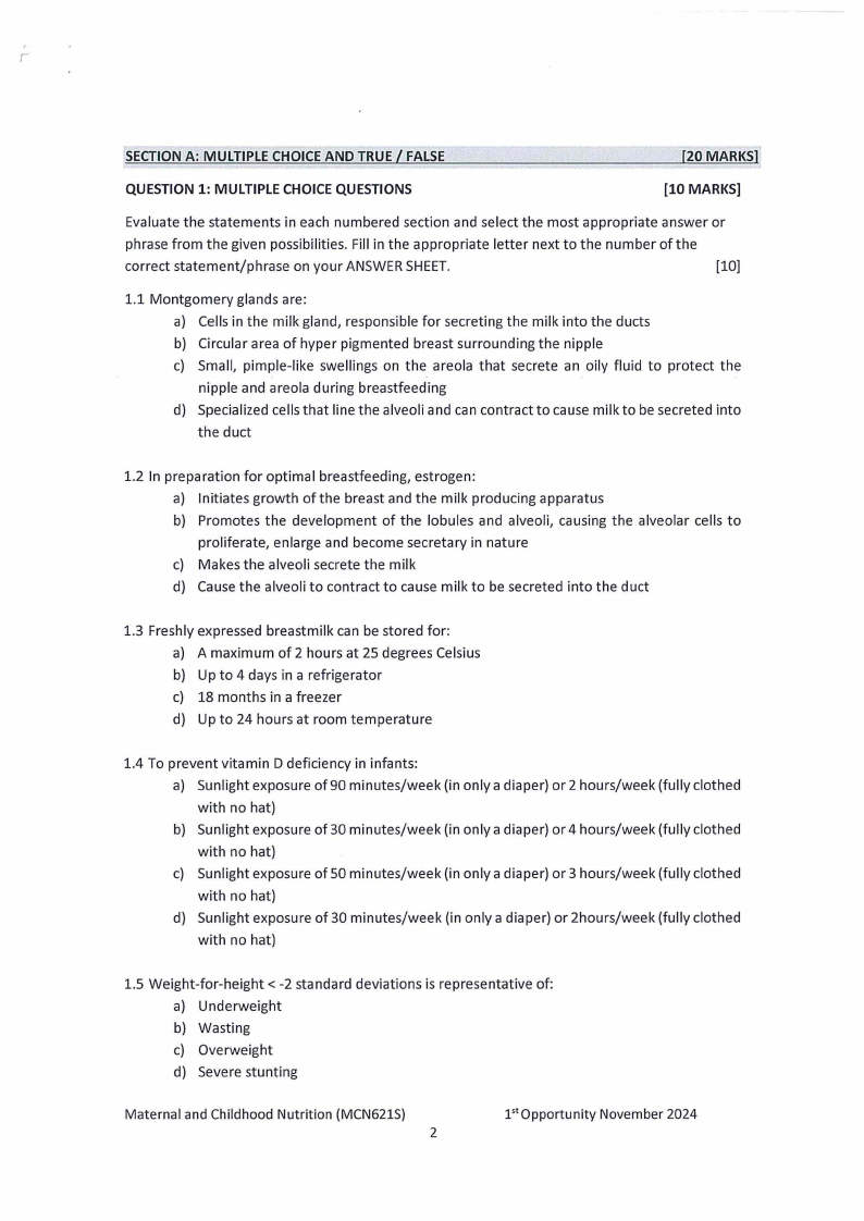 SECTION A: MULTIPLE CHOICE AND TRUE/ FALSE