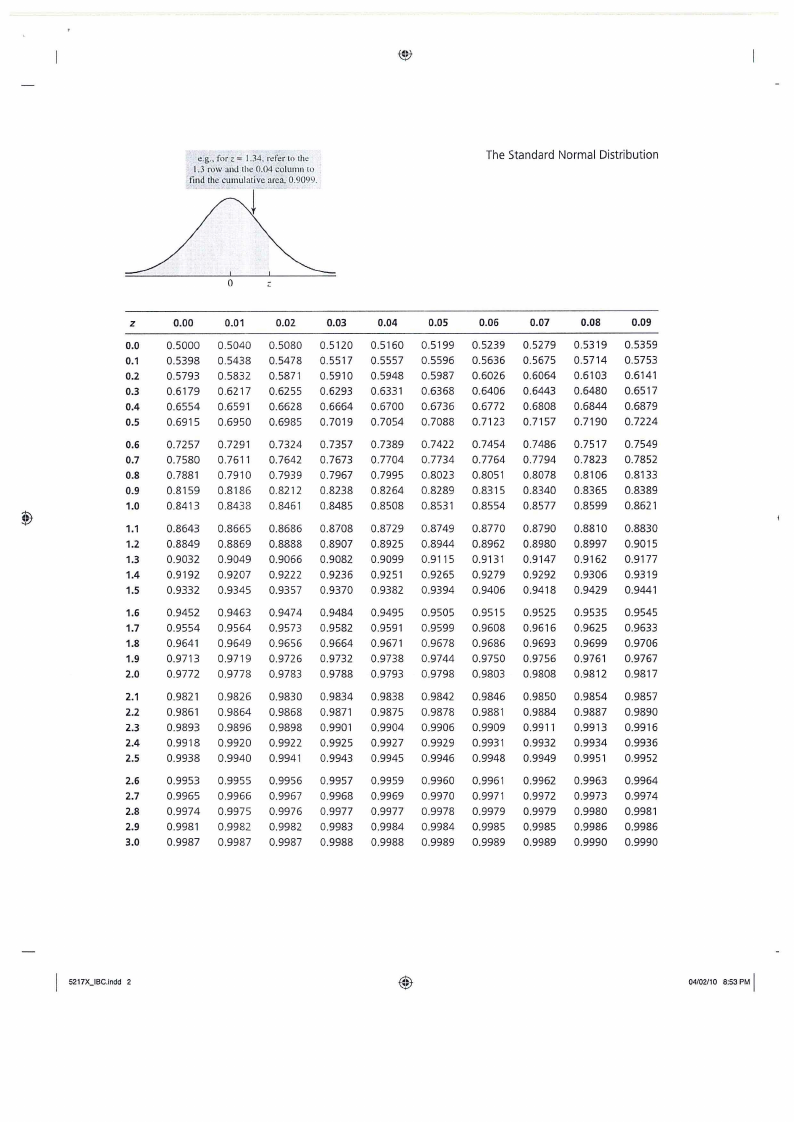 Source: Cumulative standard normal probabilities generated by Minitab, then rounded to four decimal places.