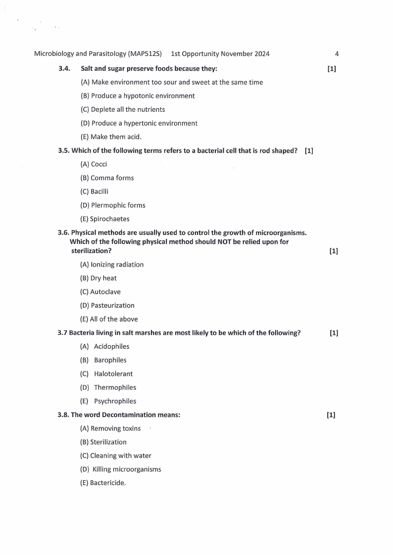 MAP512S - MICROBIOLOGY AND PARASITOLOGY -1ST OPP - NOVEMBER 2024 |