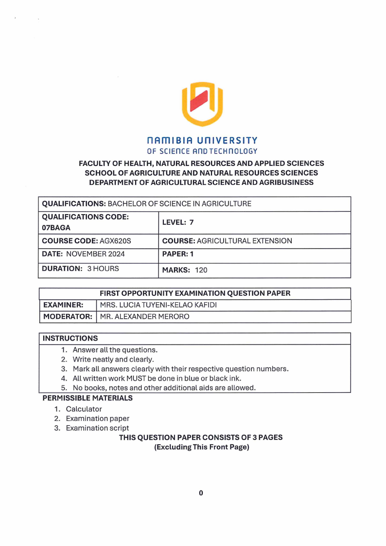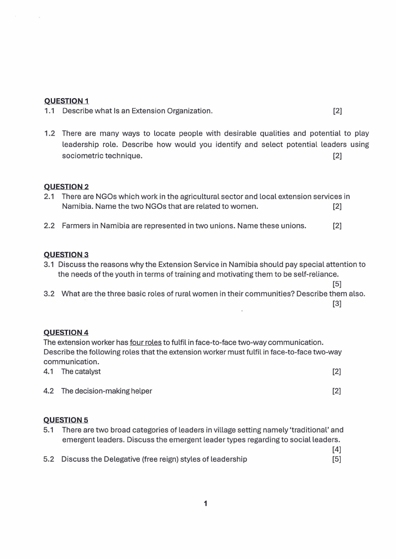 7.1 Discuss two (2) of the personal characteristics skills that may improve the extension