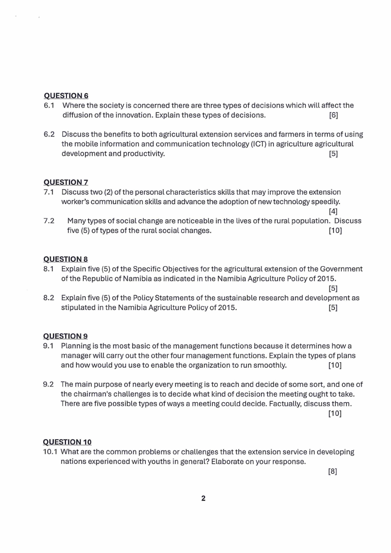 8.1 Explain five (5) of the Specific Objectives for the agricultural extension of the Government