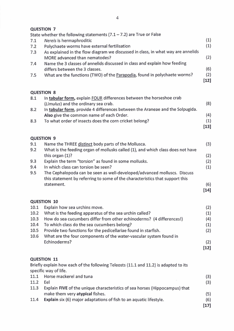 2.3 Nereis; hermaphroditic; parapodia; complete digestive system