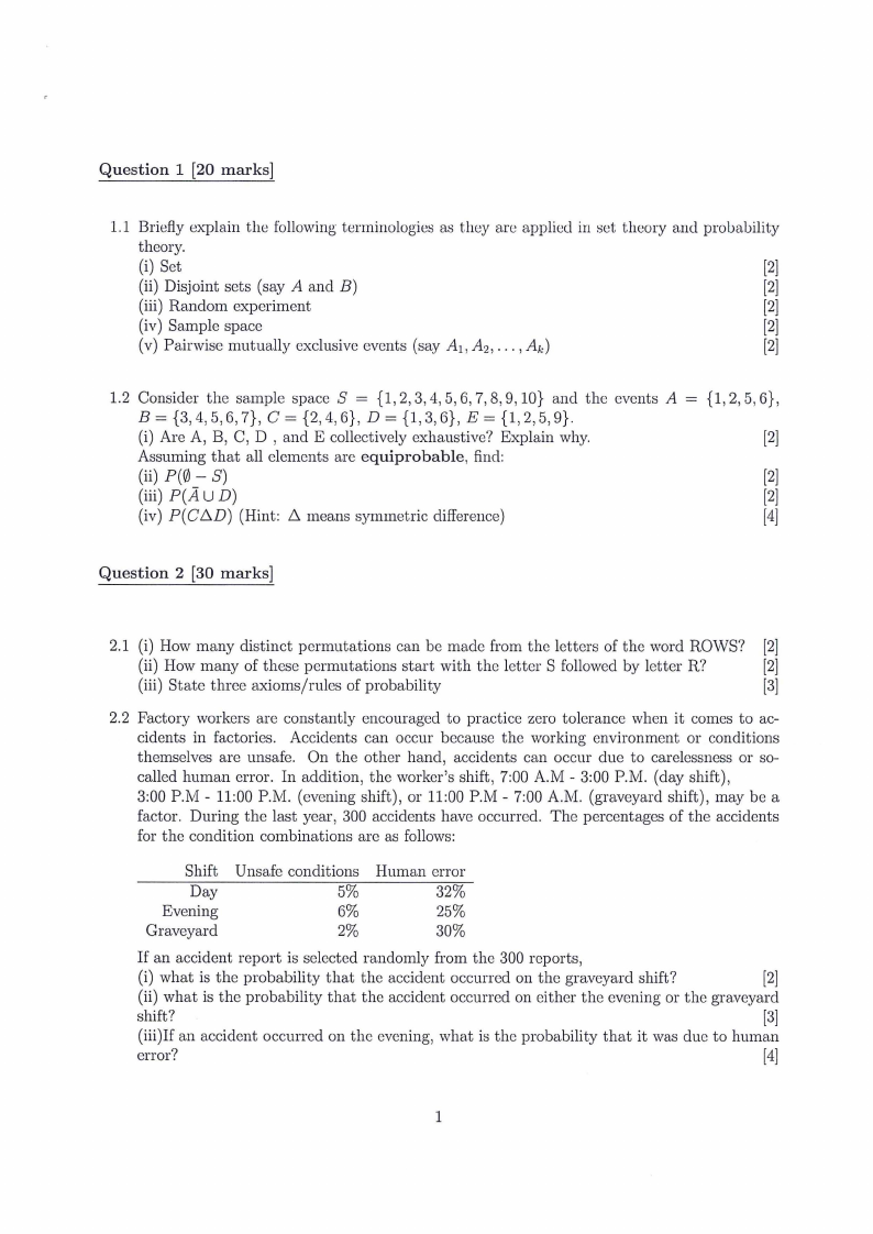 1.1 Briefly explain the follmving terminologies as they are applied in set theory and proiJaiJility