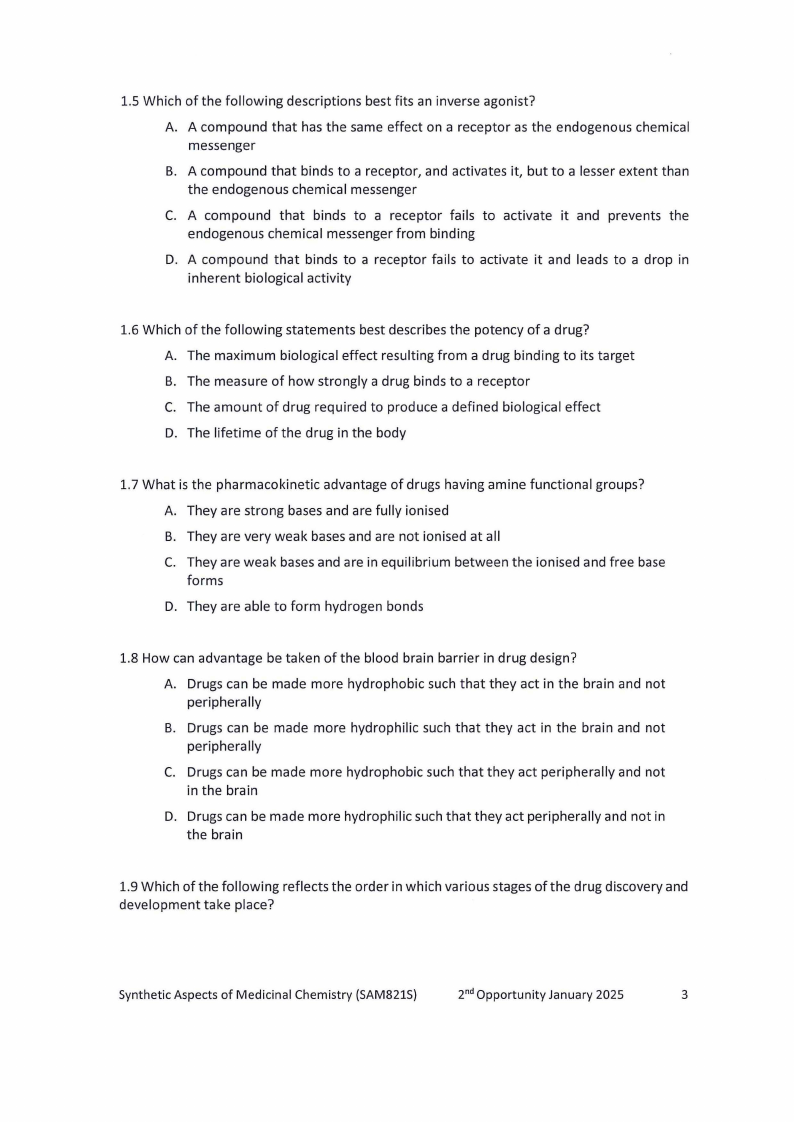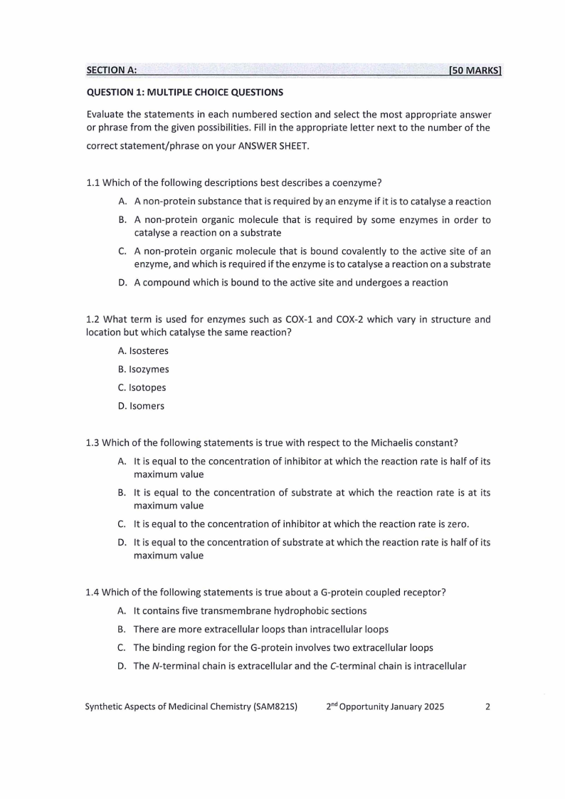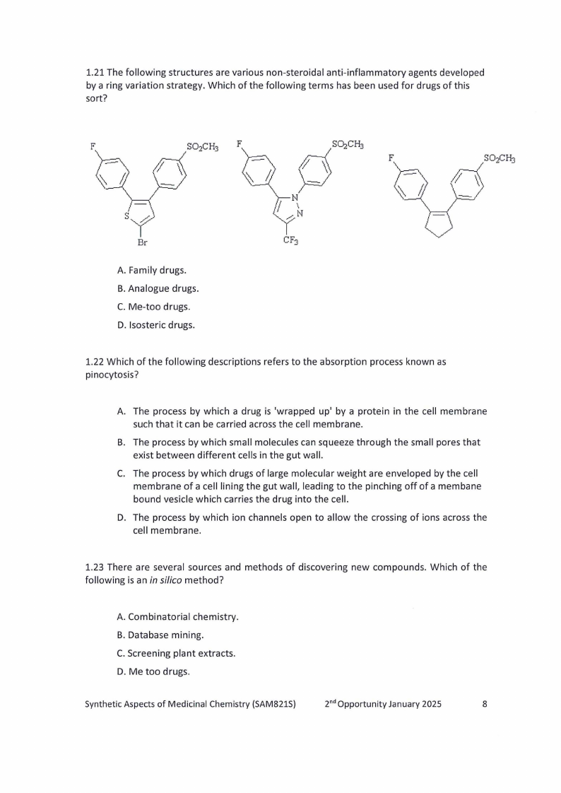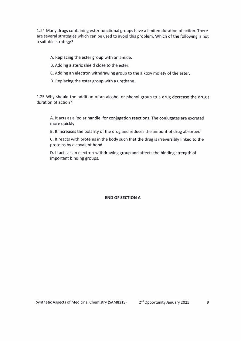 SAM821S - SYNTHETIC ASPECTS OF MEDICINAL CHEMISTRY - 2ND OPP - JANUARY 2025 |