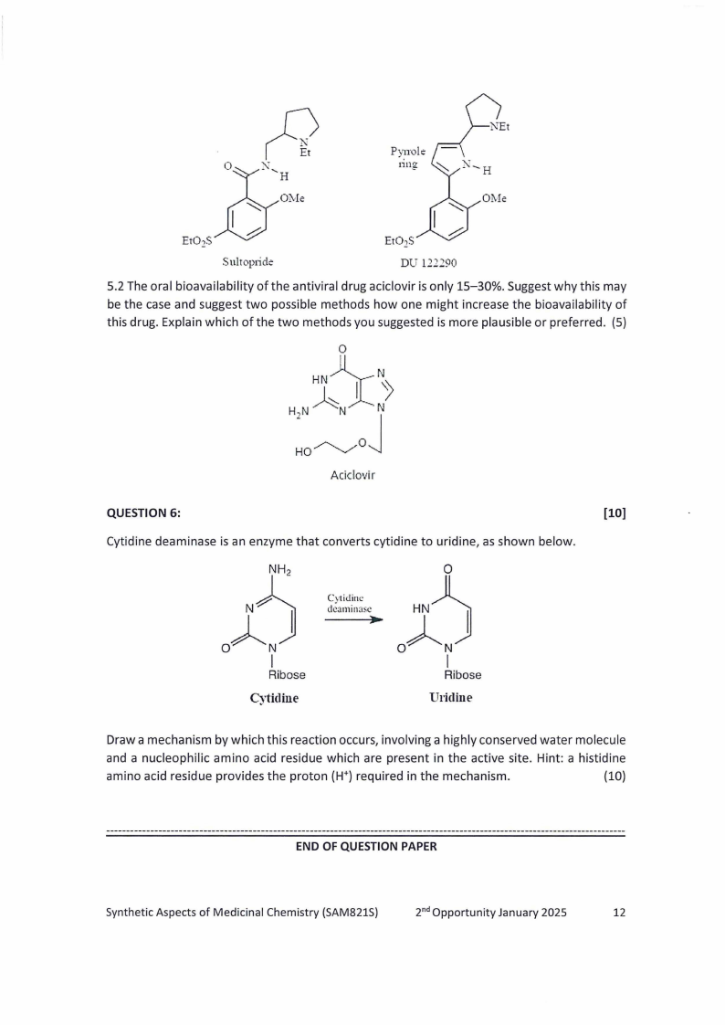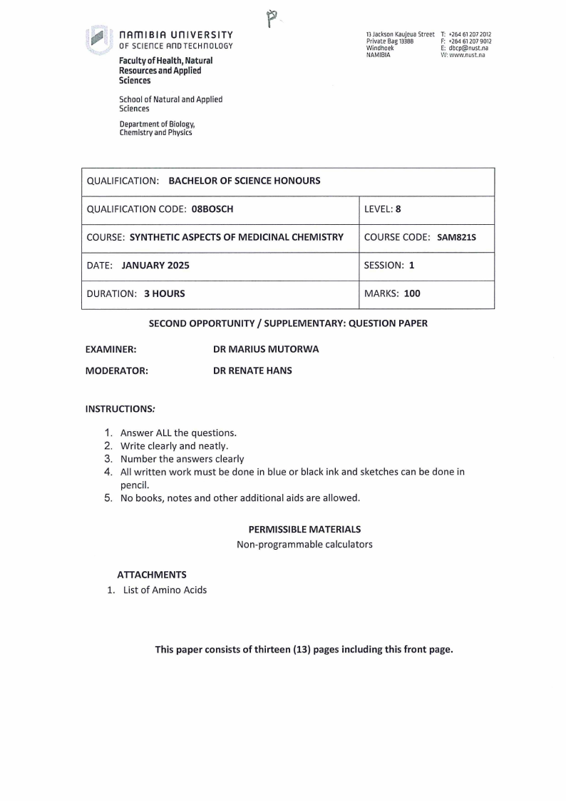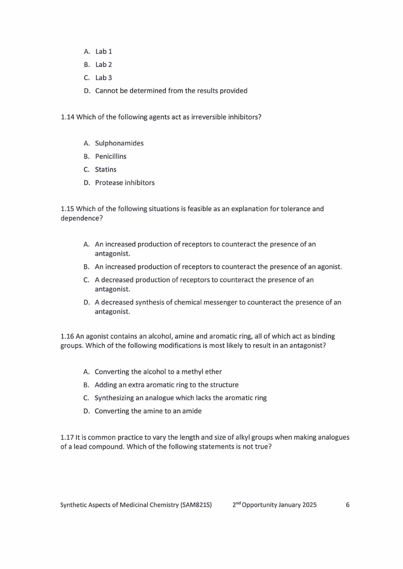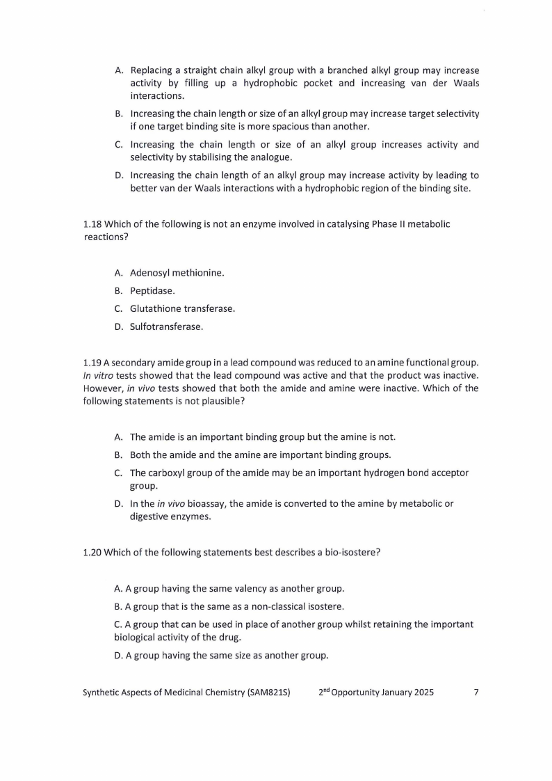 SAM821S - SYNTHETIC ASPECTS OF MEDICINAL CHEMISTRY - 2ND OPP - JANUARY 2025 |