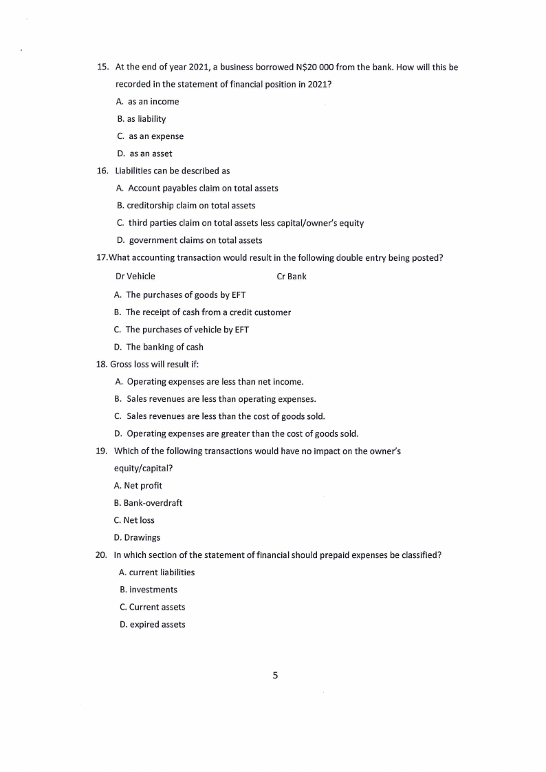 5 Nandi went to the bank and drew N$1 200 in cash for use in the business.