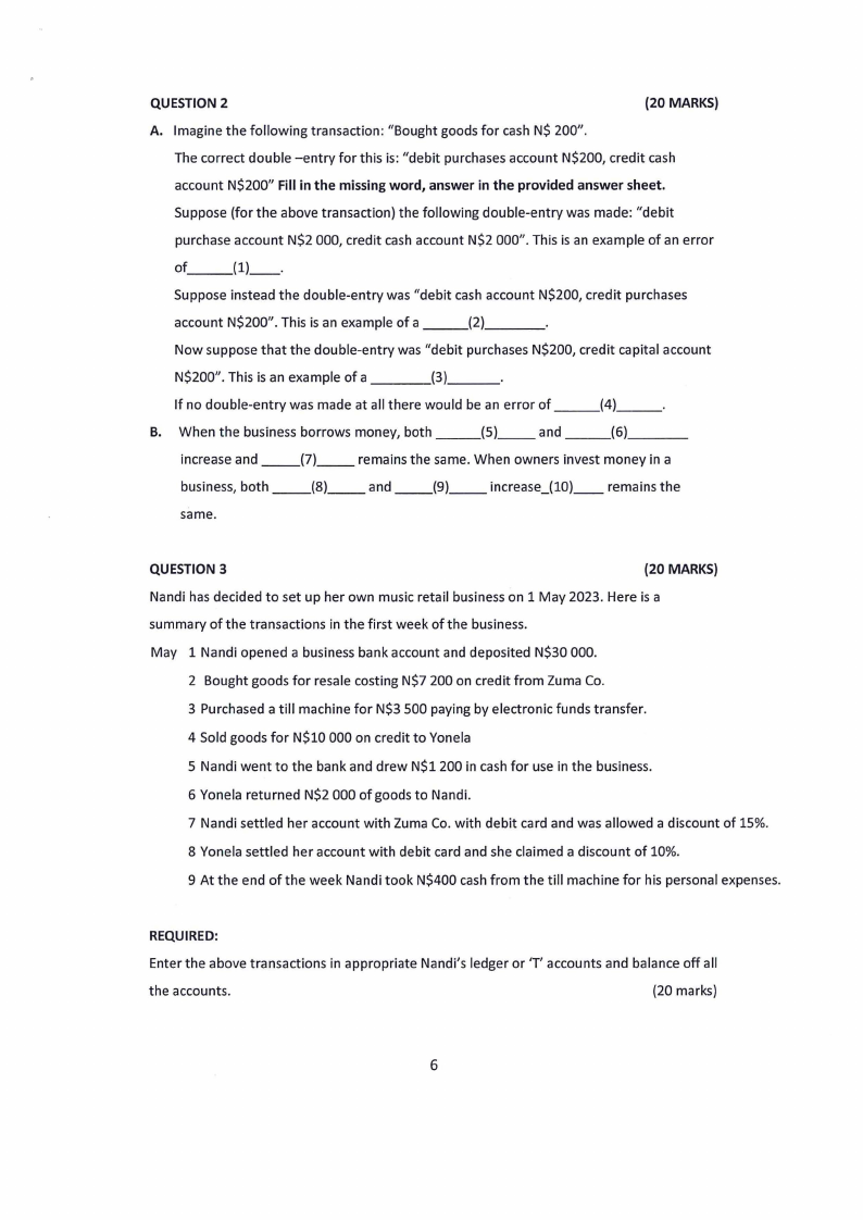 6 Yonela returned N$2 000 of goods to Nandi.
