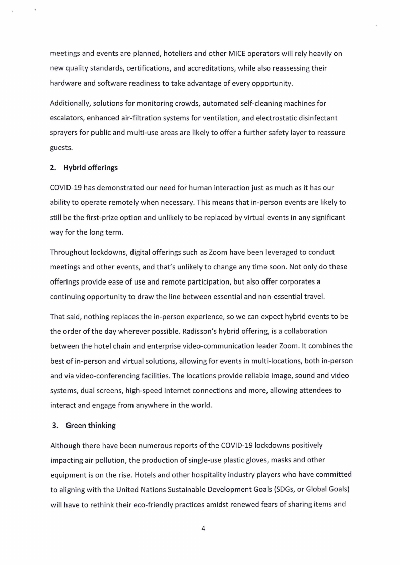 meetings and events are planned, hoteliers and other MICE operators will rely heavily on