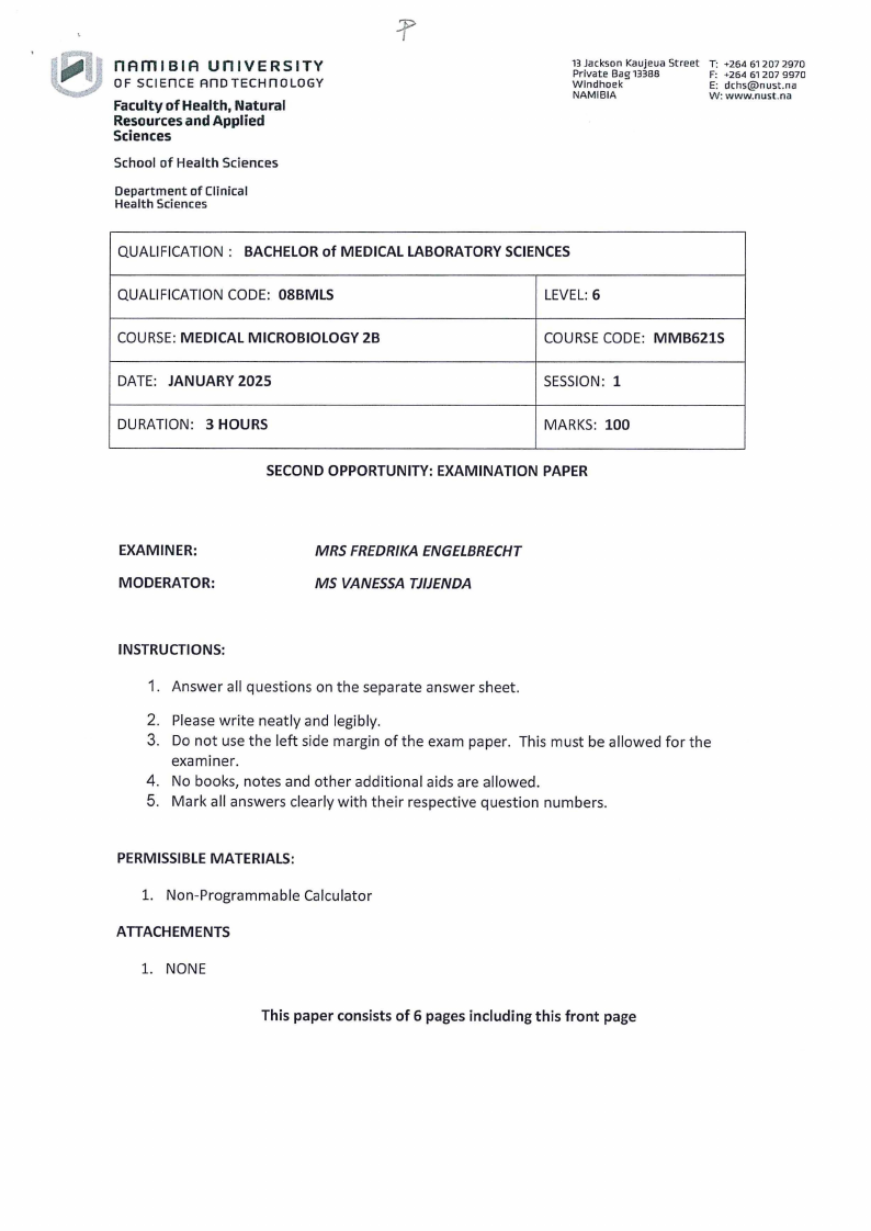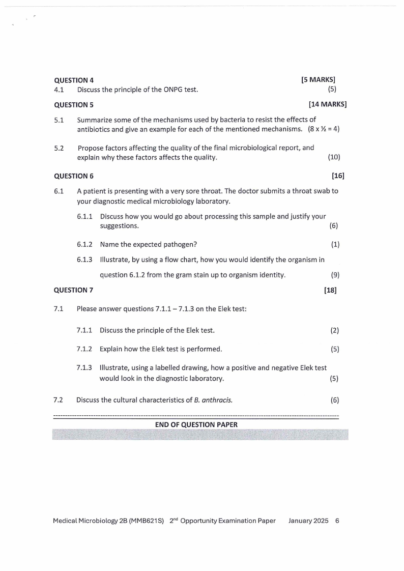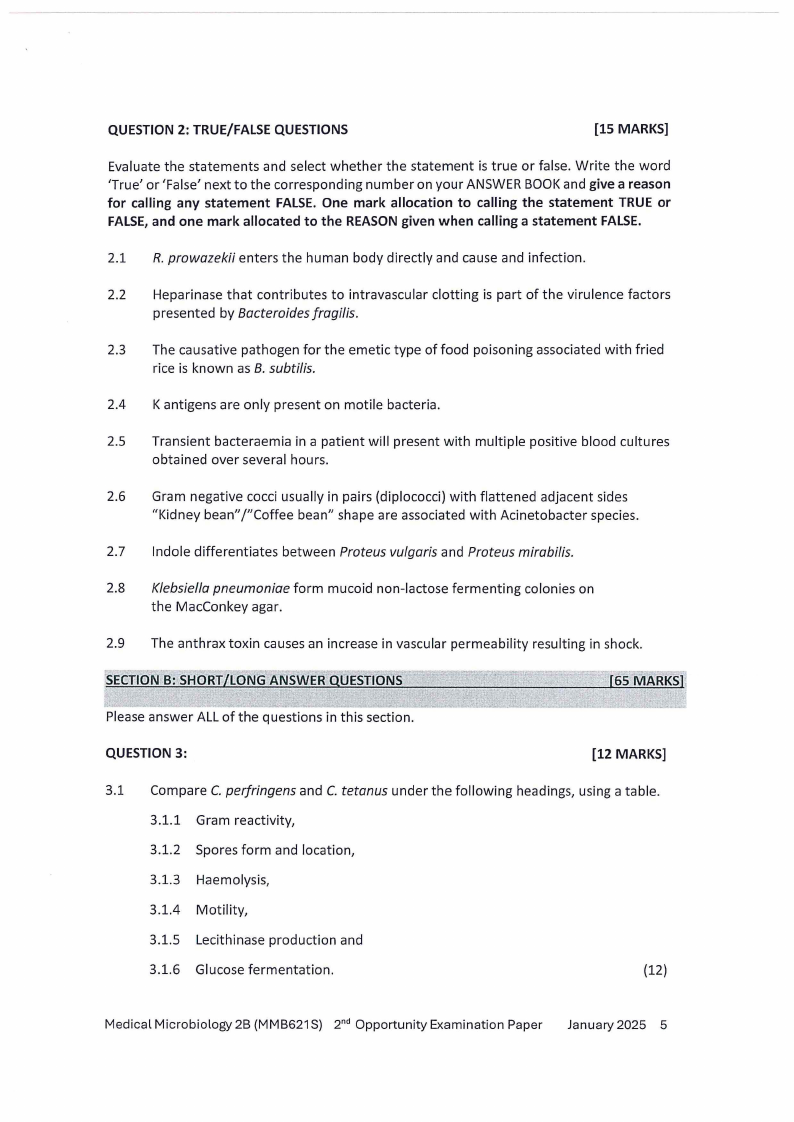 MMB621S - MEDICAL MICROBIOLOGY 2B - 2ND OPP -JANUARY 2025 |