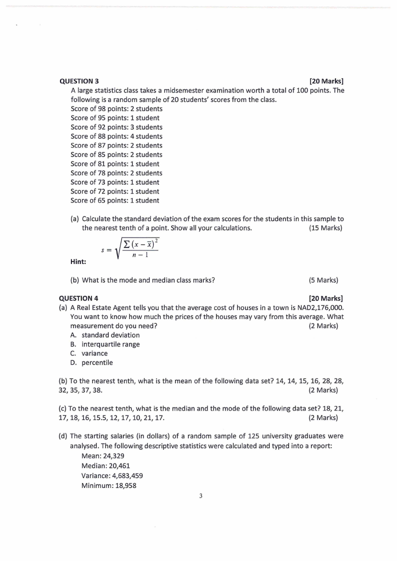 (a) Calculate the standard deviation of the exam scores for the students in this sample to