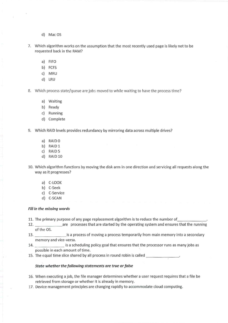 5. Distinguish between page replacement algorithms and scheduling algorithms in operating systems.