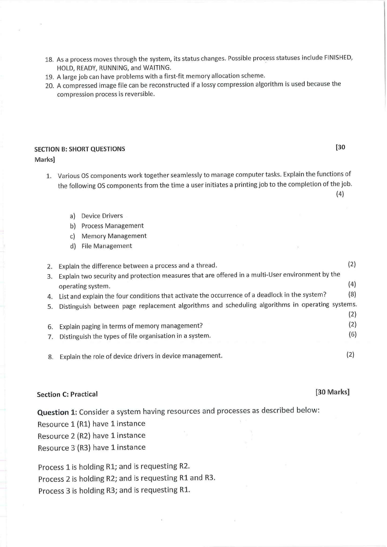 1. Various OS components work together seamlessly to manage computer tasks. Explain the functions of