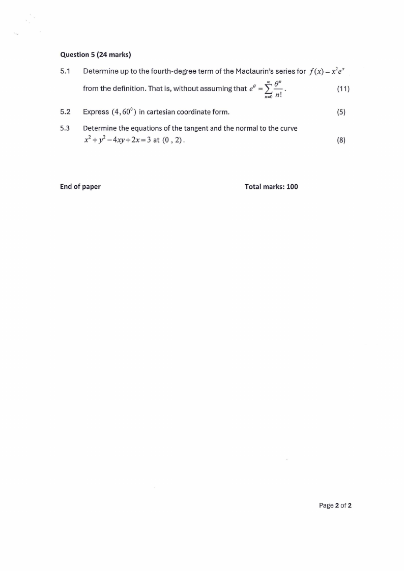 SECOND OPPORTUNITY/ SUPPLEMENTARY: EXAMINATION QUESTION PAPER