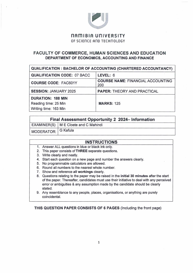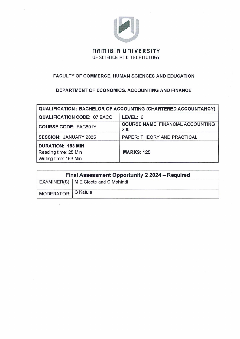 • Raw material (cost price N$ 250 000). The raw material has a fair value of N$