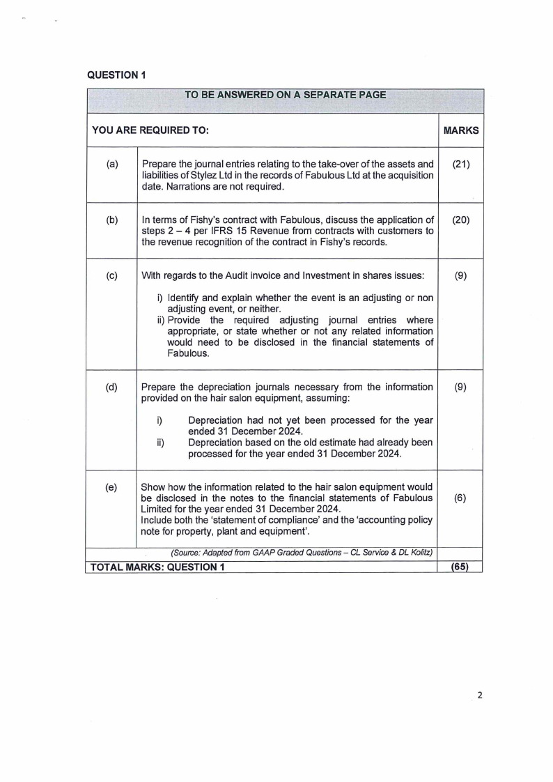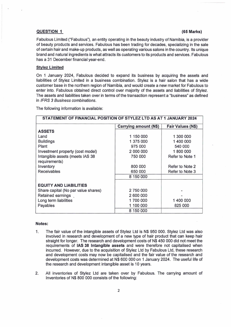 • Fabulous Ltd will make a cash payment of N$ 1 600 000 at the acquisition date
