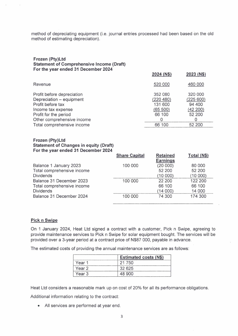 • Heat Ltd will make a cash payment of N$ 1 600 000 at the acquisition date and will