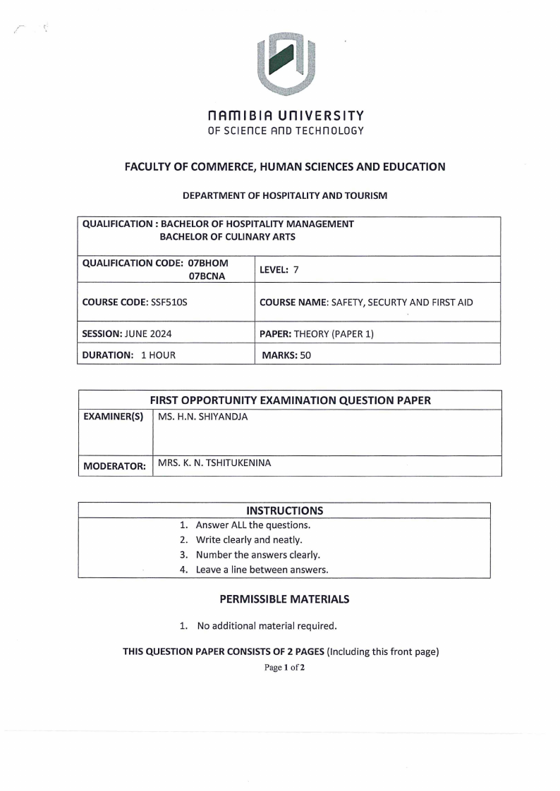 COURSE NAME: SAFETY,SECURTYAND FIRSTAID