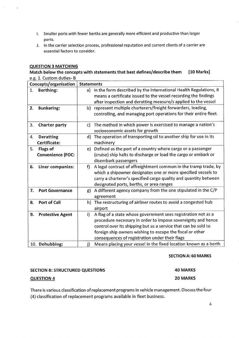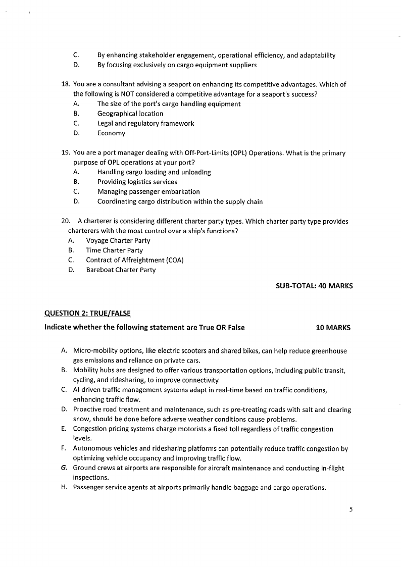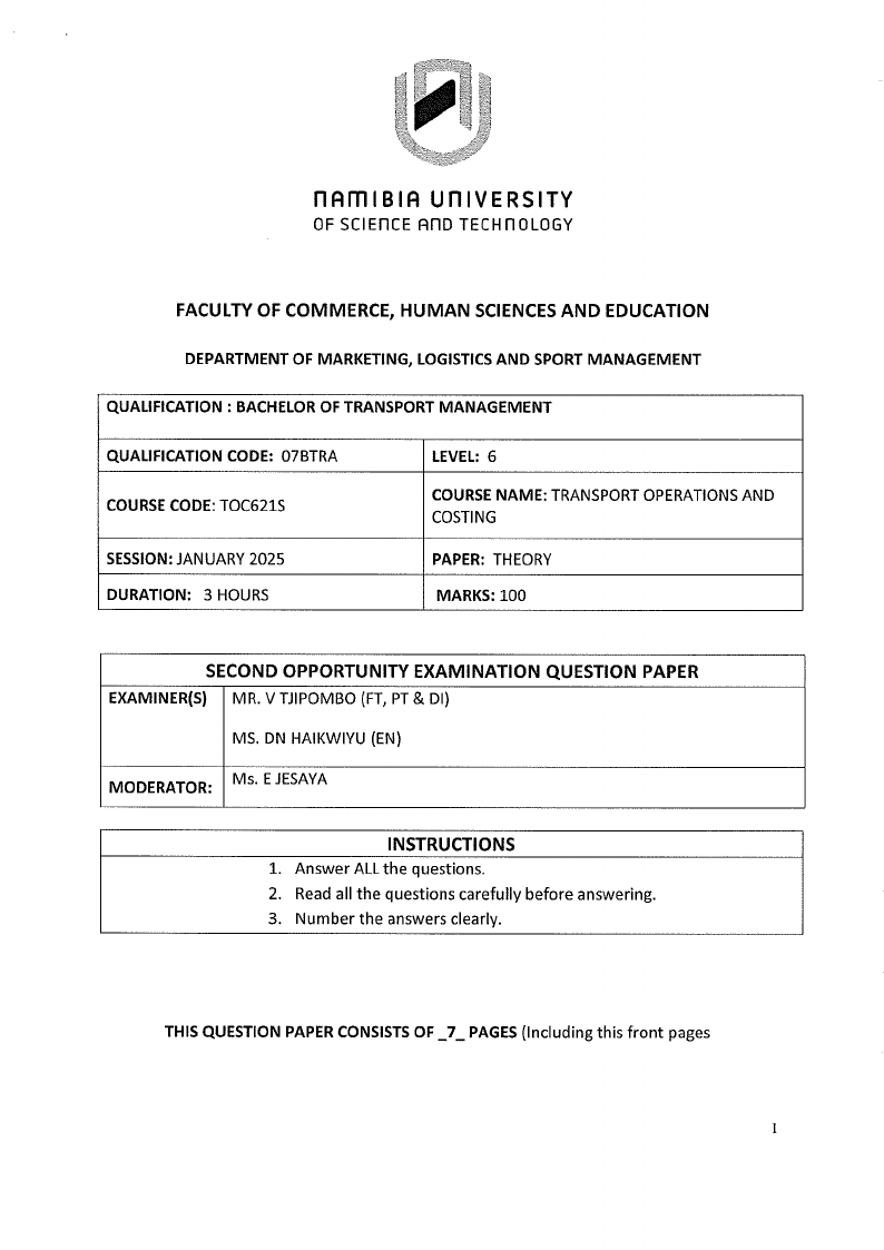 TOC621S - TRANSPORT OPERATIONS AND COSTING - 2ND OPP - JANUARY 2025