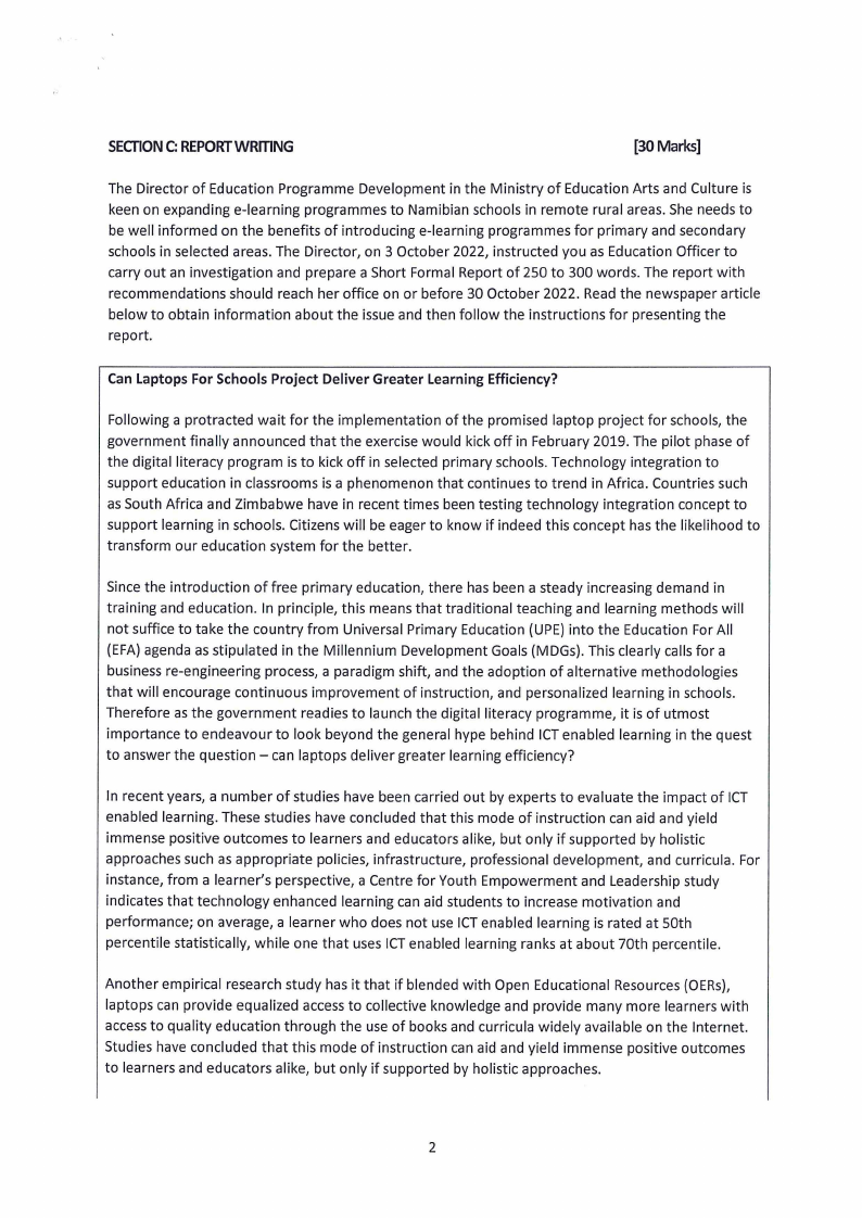 schools in selected areas. The Director, on 3 October 2022, instructed you as Education Officer to