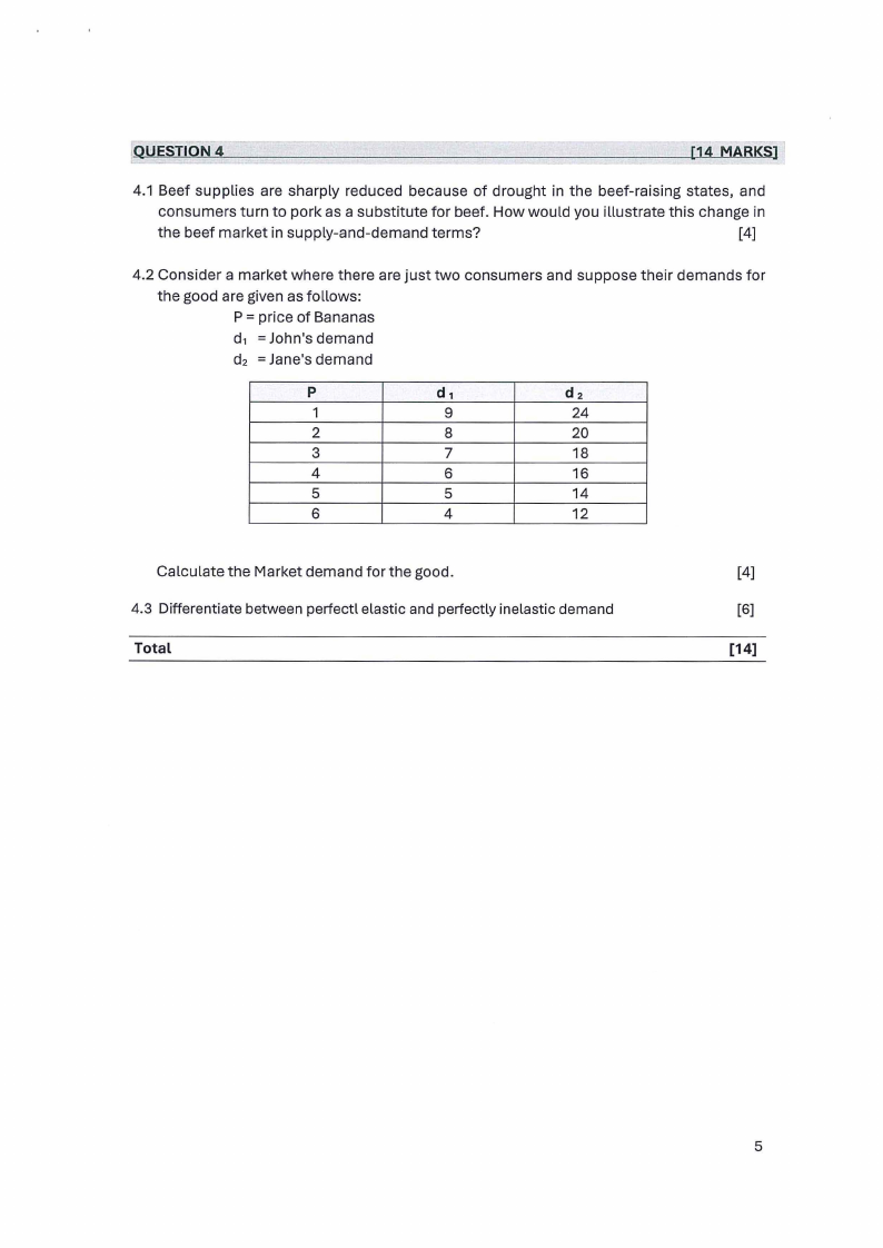 market. Where Pis the price in N$/kg, and Q. and Qd are quantity demanded and