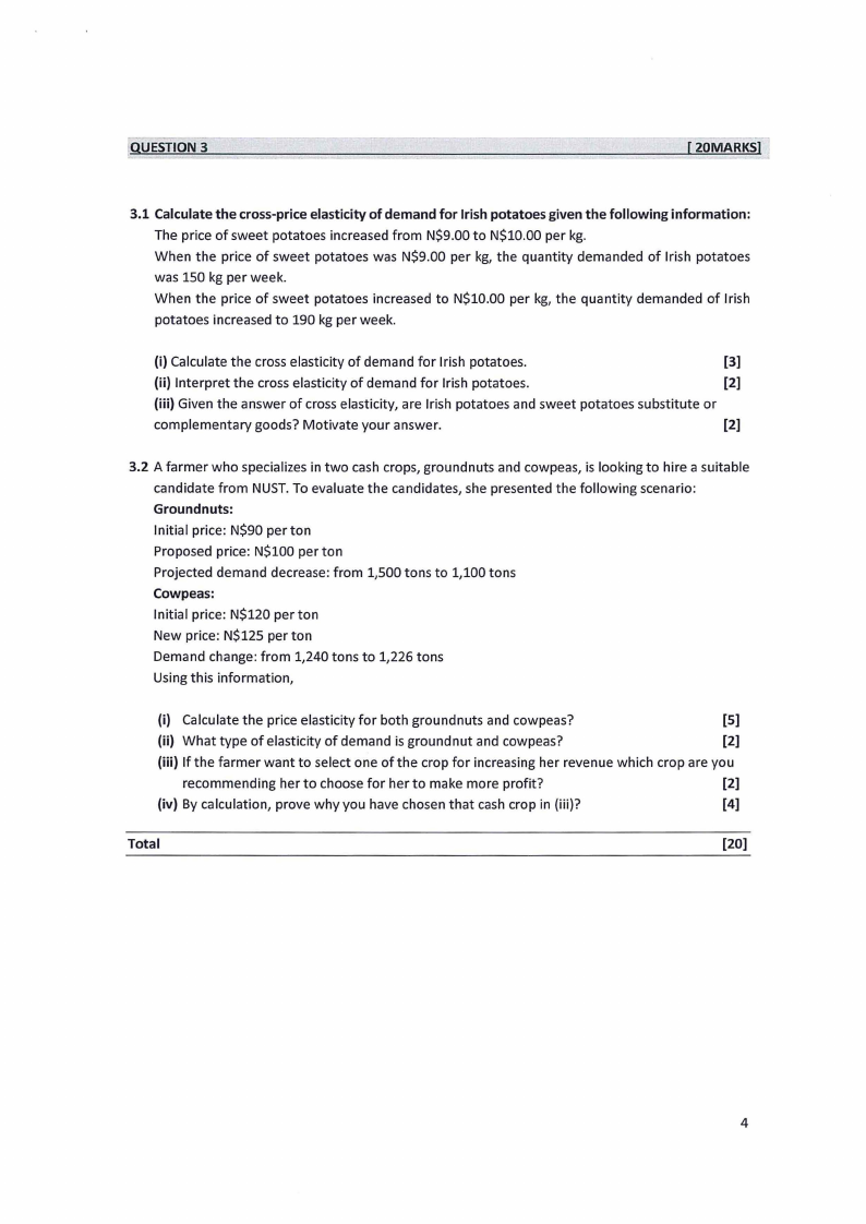 3.1 Calculate the cross-price elasticity of demand for Irish potatoes given the following information: