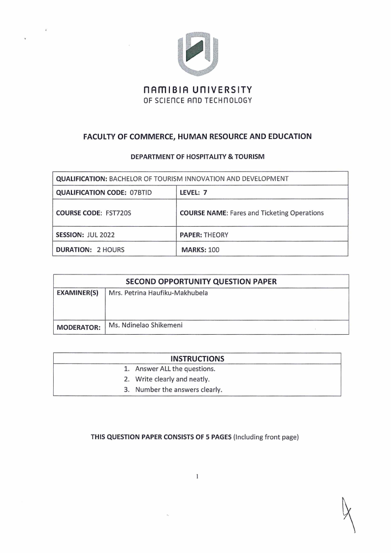 FST720S - FARES AND TICKETING OPERATIONS - 2ND OPP - JULY 2022