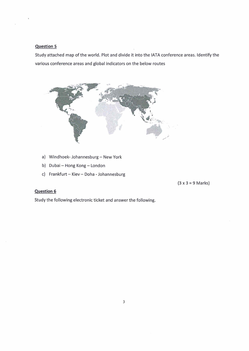 Study attached map of the world. Plot and divide it into the IATA conference areas. Identify the