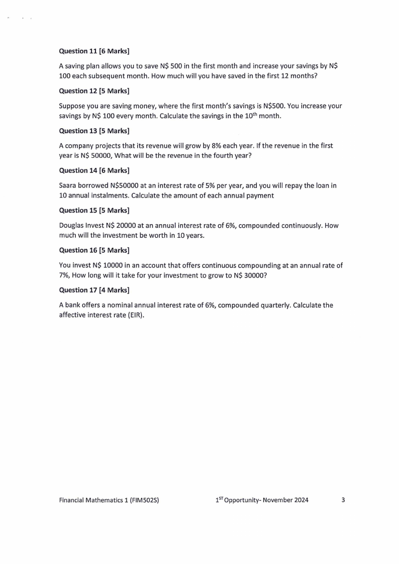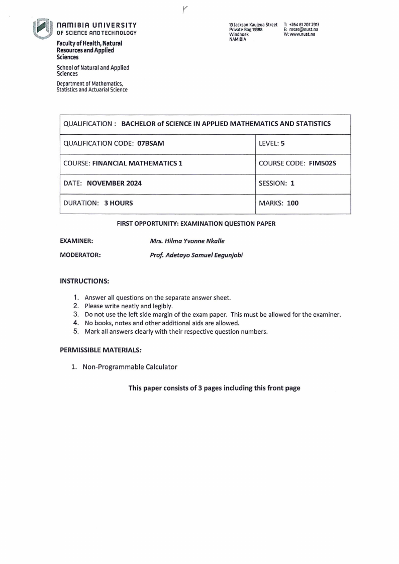 Financial Mathematics 1 (FIM5025)